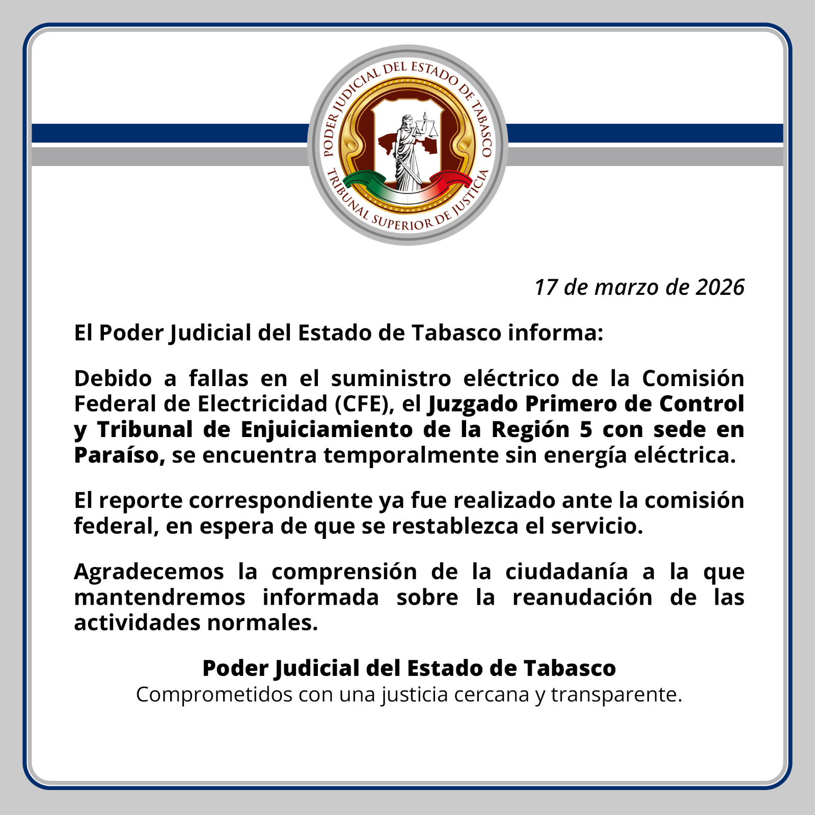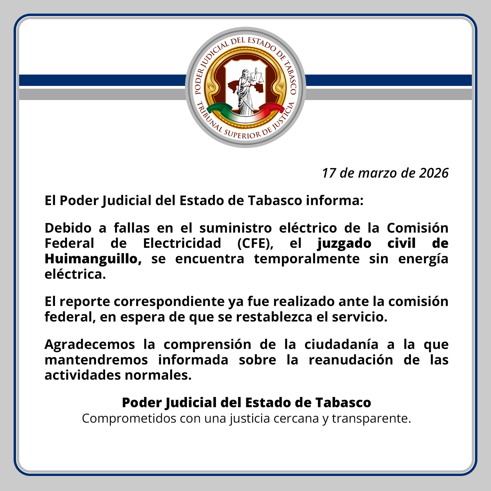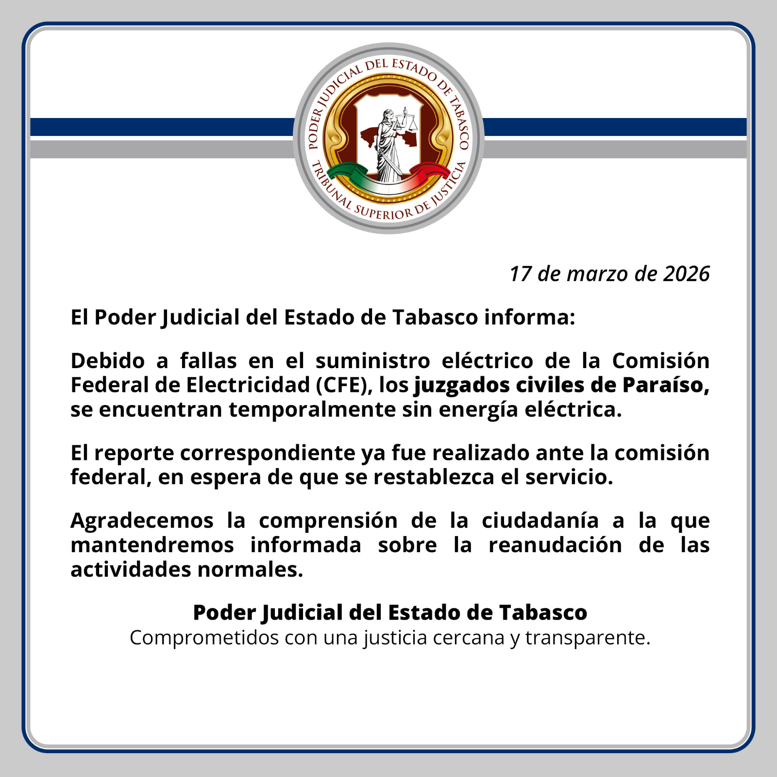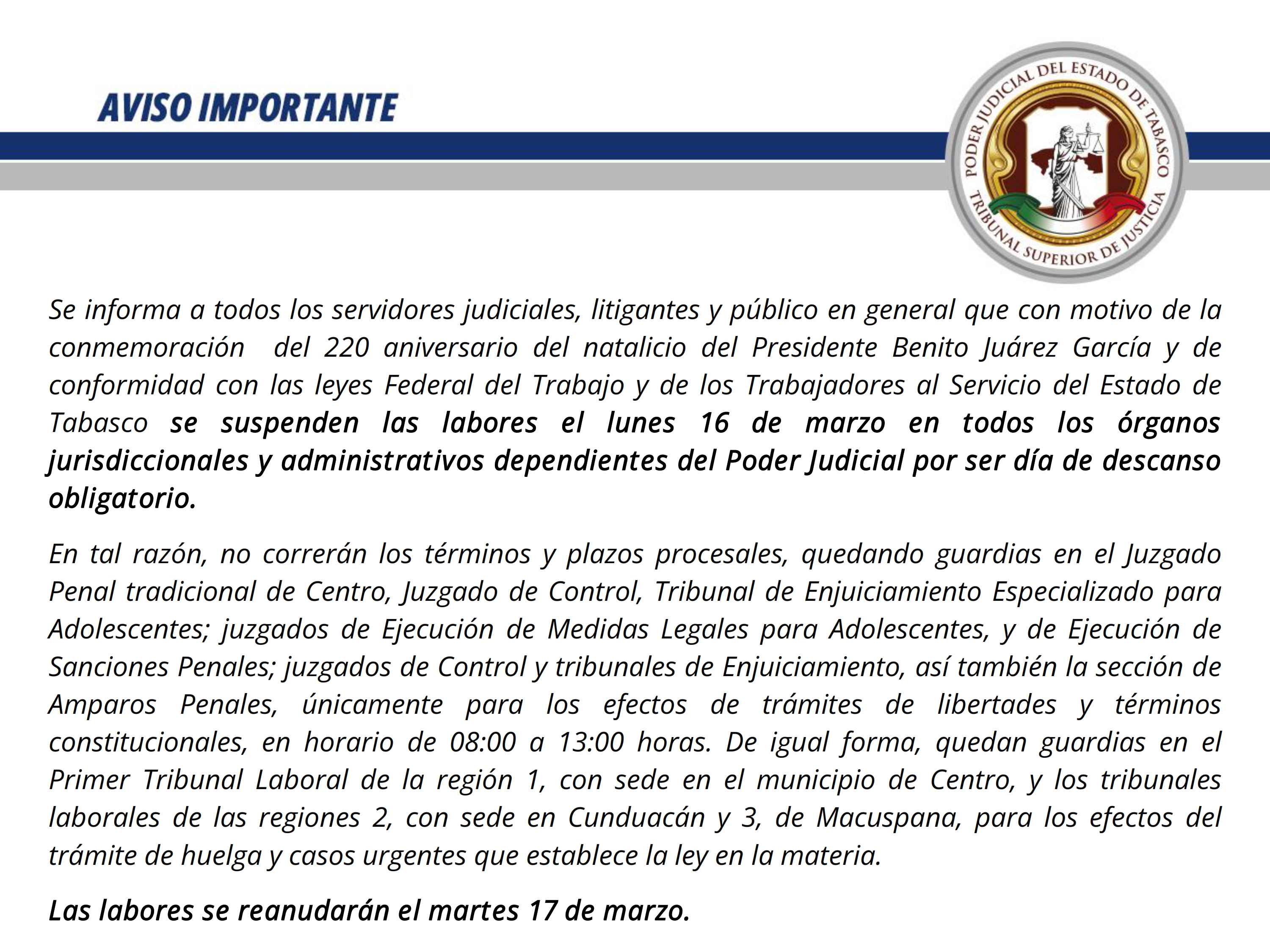 Circular 06/2026. Suspensión de labores del viernes 27 de febrero de 2026. Con motivo de la conmemoración del CLXII Aniversario del Triunfo de las Fuerzas Liberales sobre el invasor Francés en Tabasco