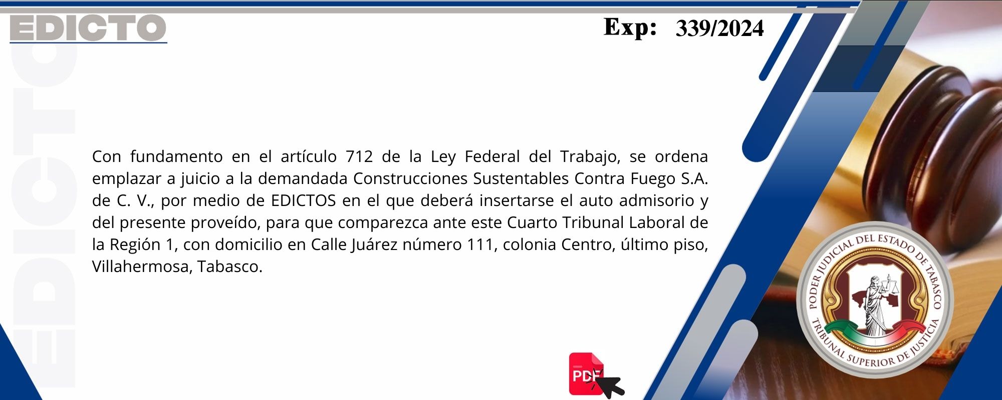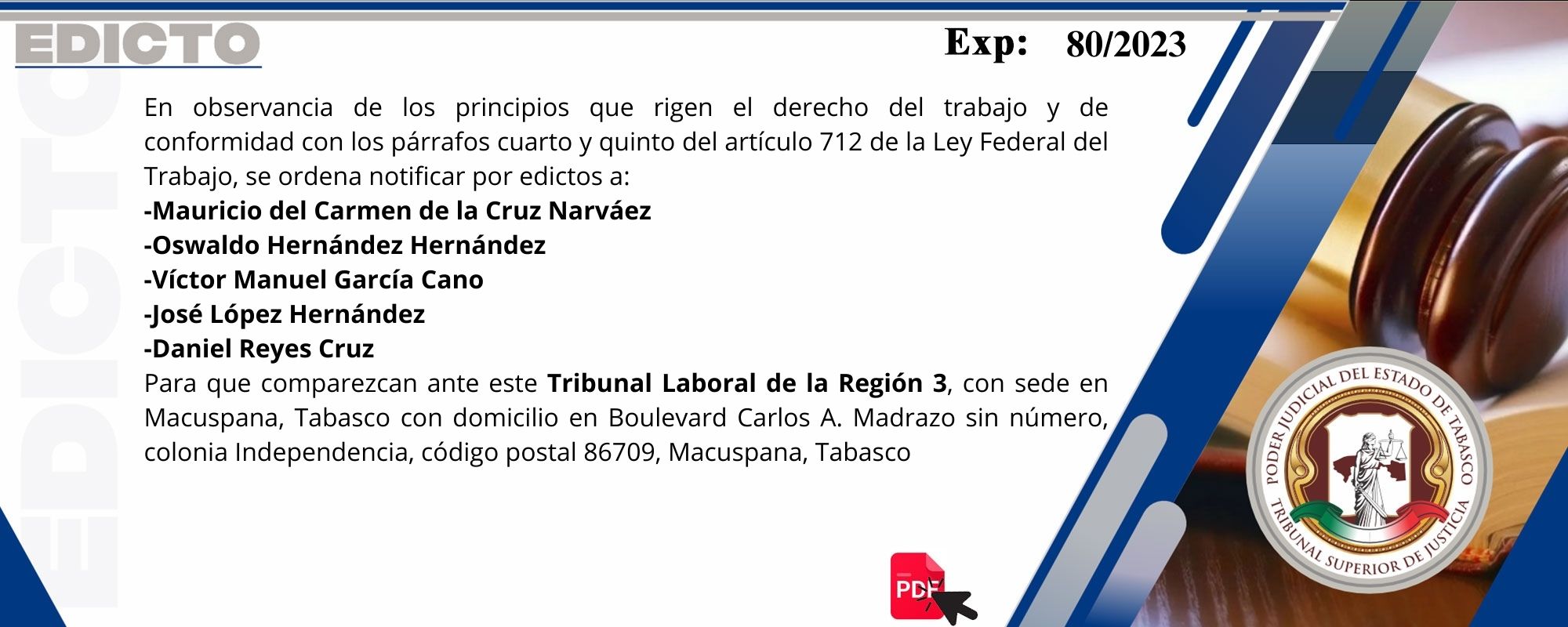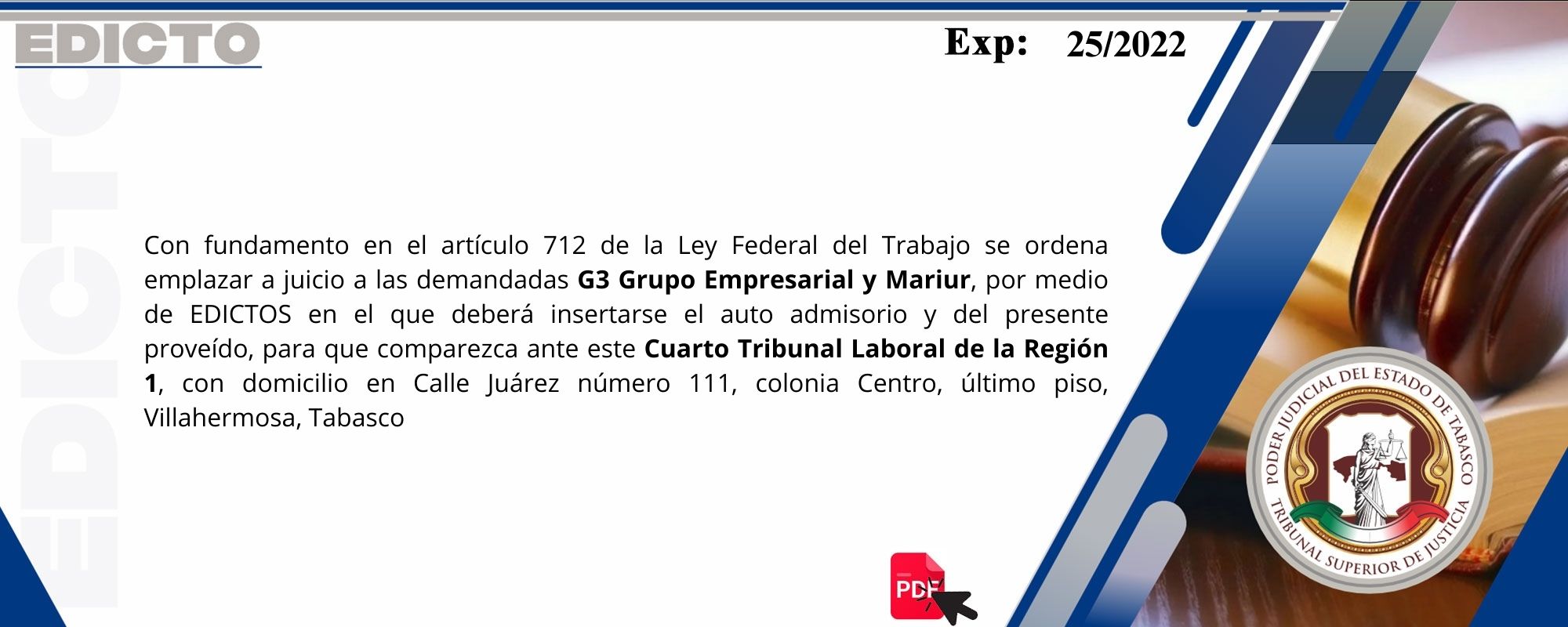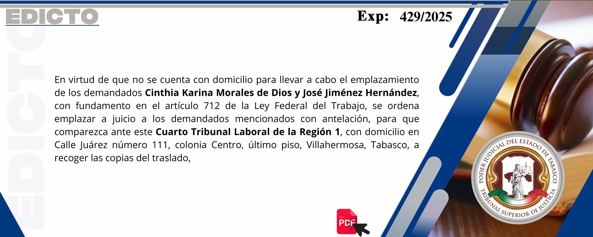 Con motivo de la celebración del "Aniversario de la Revolución Mexicana", así como del día del Trabajador Sindicalizado,el Poder Judicial del Estado de Tabasco, suspenderá sus labores los días 17 y 18 de noviembre de 2025, por acuerdo de los Plenos del Tribunal Superior de Justicia y del Órgano de Administración Judicial.