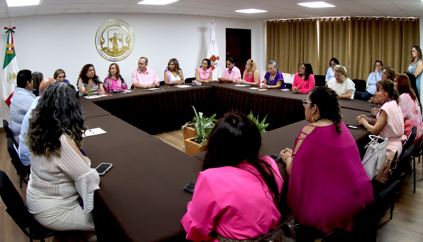 El magistrado presidente del Tribunal Superior de Justicia (TSJ), Carlos Efrain Reséndez Bocanegra, tuvo la oportunidad de reunirse esta tarde con integrantes del colectivo 50+1, encabezado por su presidenta internacional, María Elena Orantes, actualmente cónsul de México en Houston, con el propósito de sostener un diálogo de los trabajos que el Poder Judicial realiza en favor de las tabasqueñas.