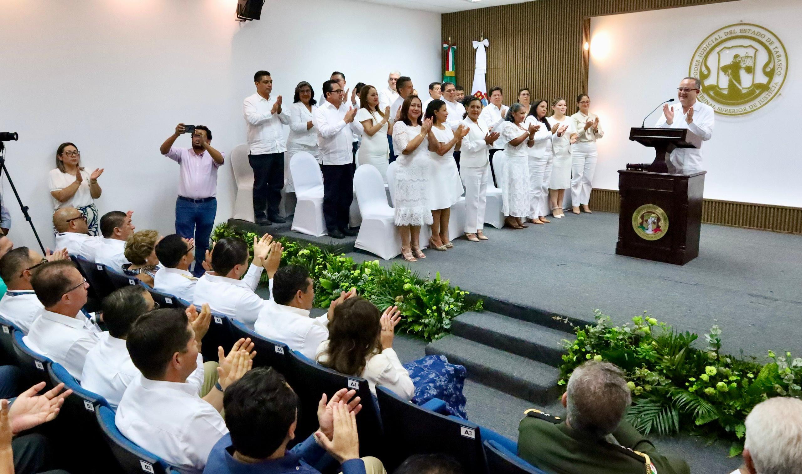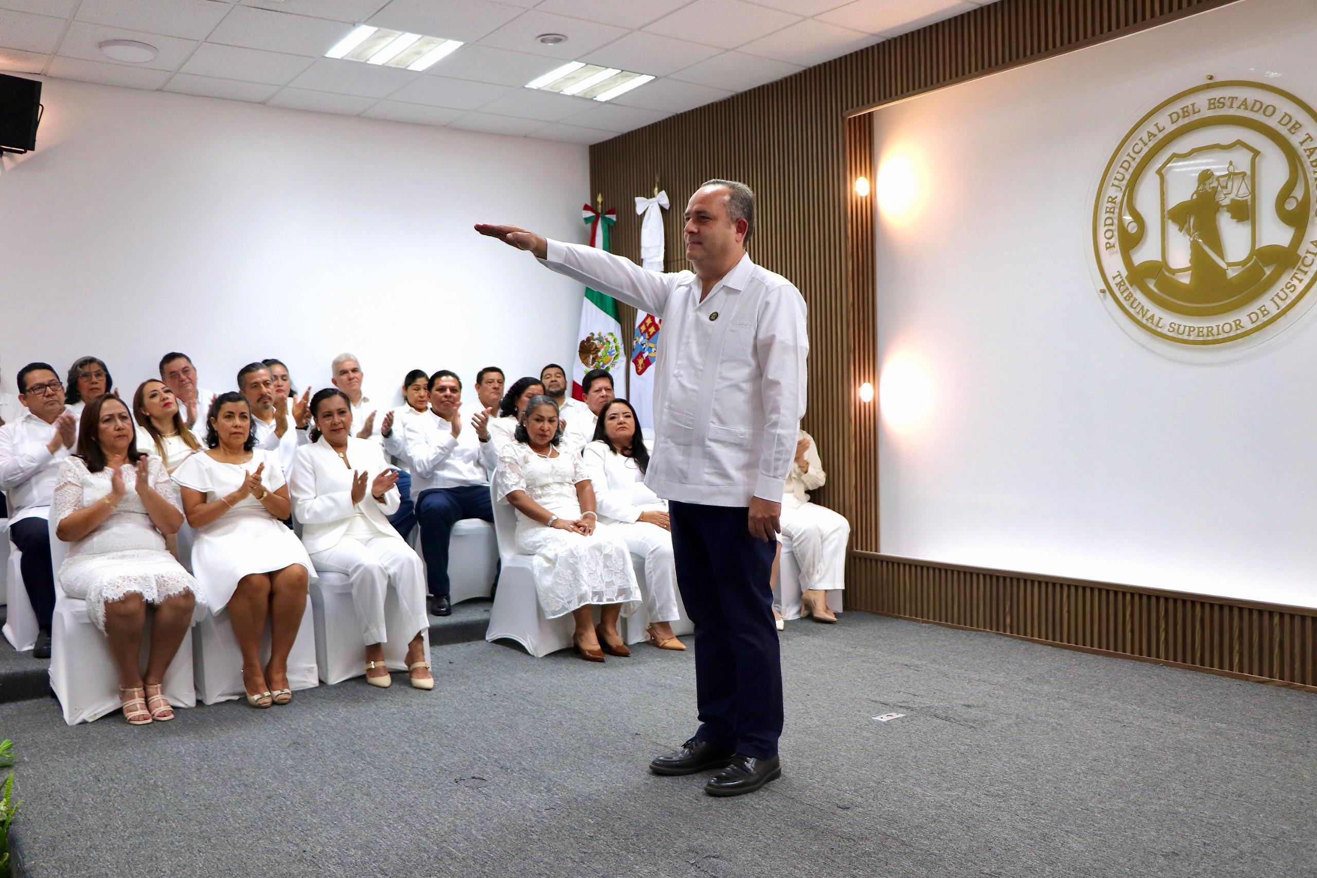Con firmeza, el nuevo Presidente del Poder Judicial refrendó su compromiso de construir un modelo de justicia más humano, digno y democrático, al servicio de las y los tabasqueños.