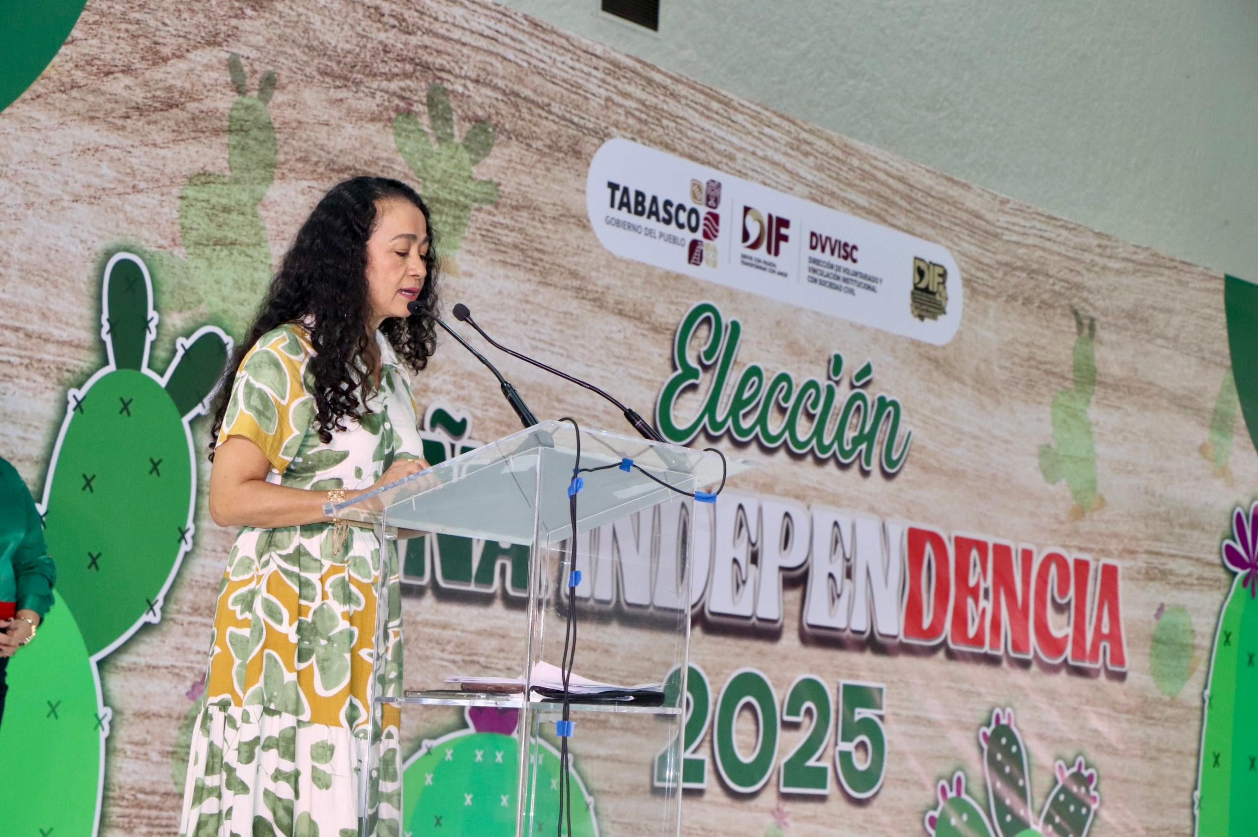 El Sistema DIF Tabasco celebró la elección de Niña Independencia 2025, un evento de identidad y unión. La presidenta del organismo, Aurora Raleigh de la Cruz, y la Flor Tabasco 2025, María Fernanda Palma Miramontes, colocaron la banda que acredita como ganadora a Bárbara Roberta Noverola Gómez, representante de los voluntariados de las secretarías de Gobierno y de Movilidad, en una ceremonia que contó con la presencia de Paola Hernández de Reséndez, coordinadora del Voluntariado del Tribunal Superior de Justicia, quien refrendó con su participación el compromiso del Poder Judicial en acciones que fortalecen a la niñez y a las familias.