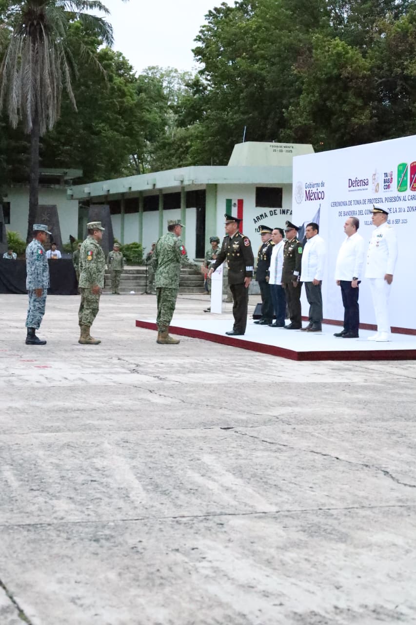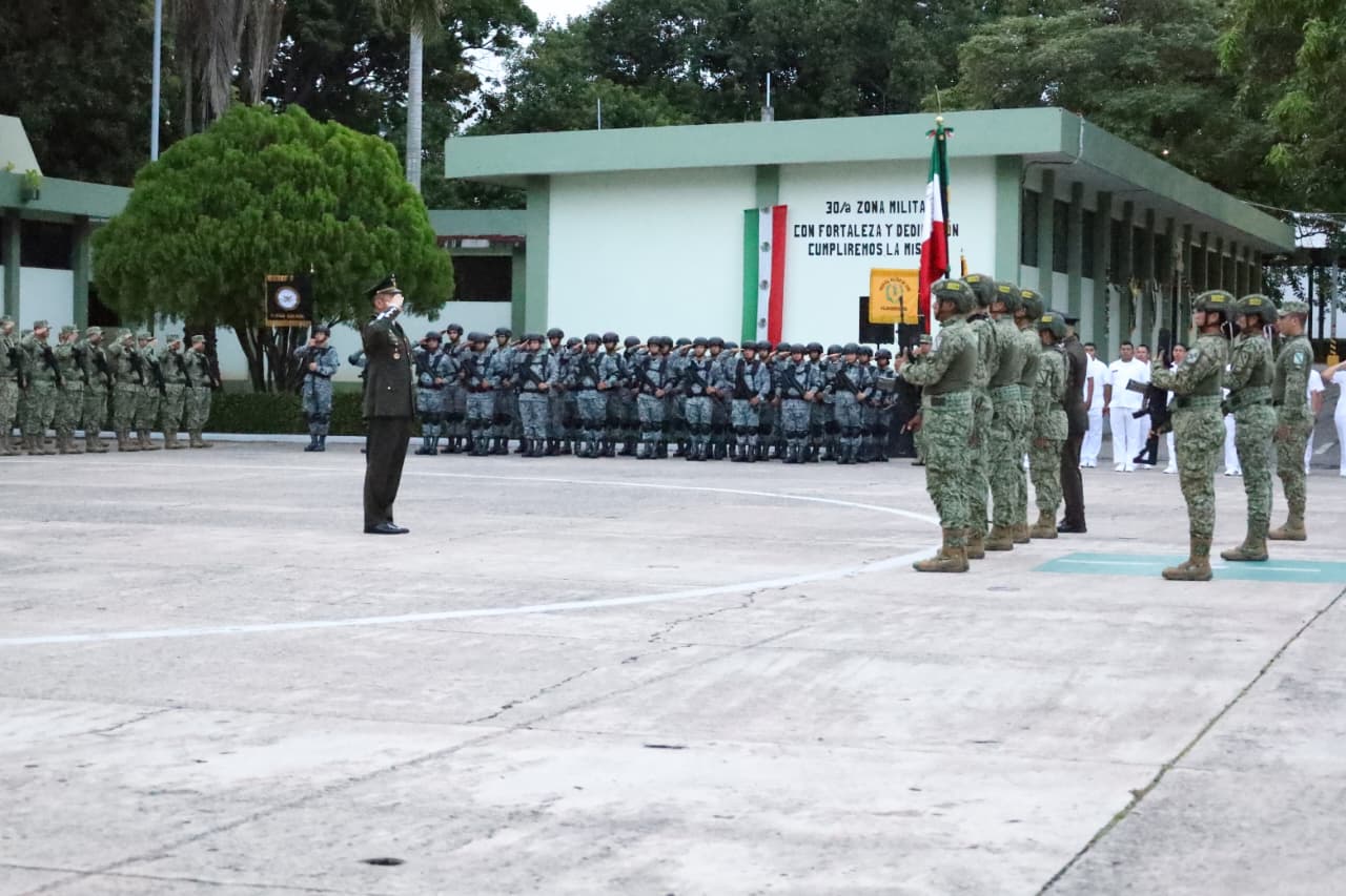 El evento se realizó en las instalaciones del 37 Batallón de Infantería con la presencia de los titulares de los Poderes Ejecutivo, Javier May Rodríguez; Judicial, Carlos Efrain Reséndez Bocanegra y el presidente de la Mesa Directiva del Congreso Local, Marcos Rosendo Medina Filigrana.
