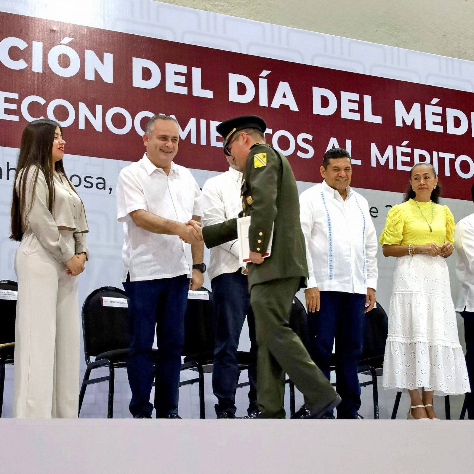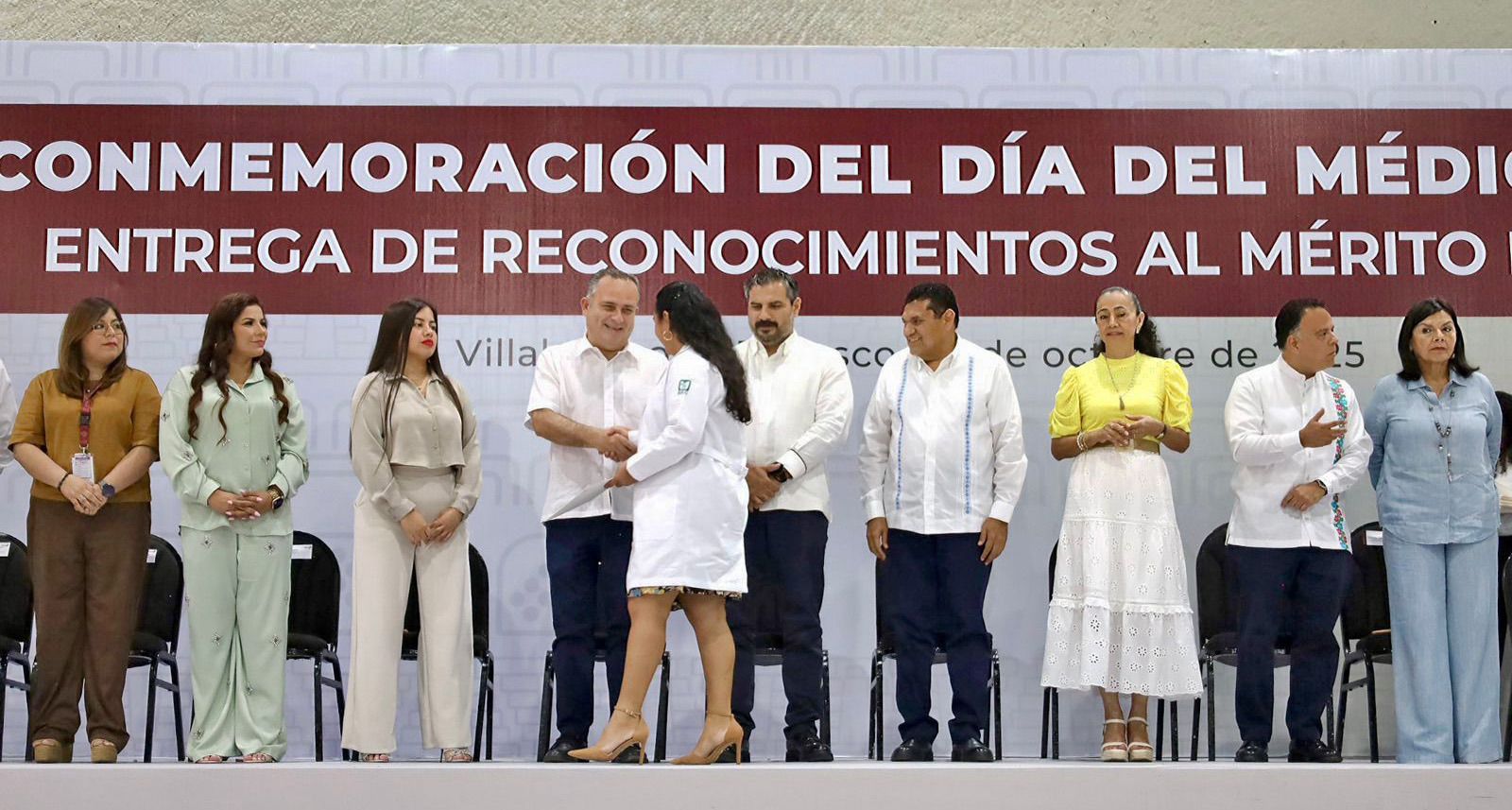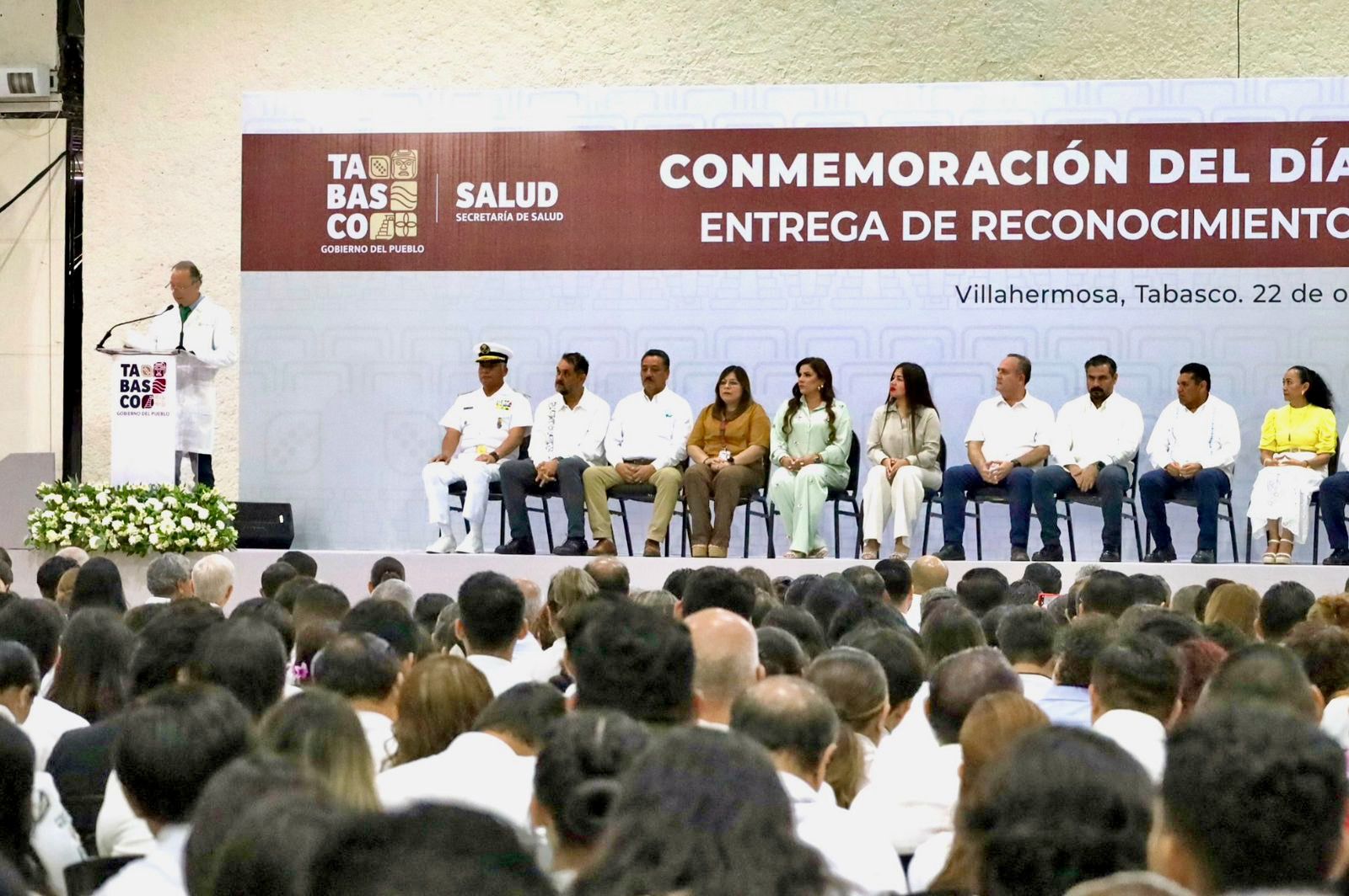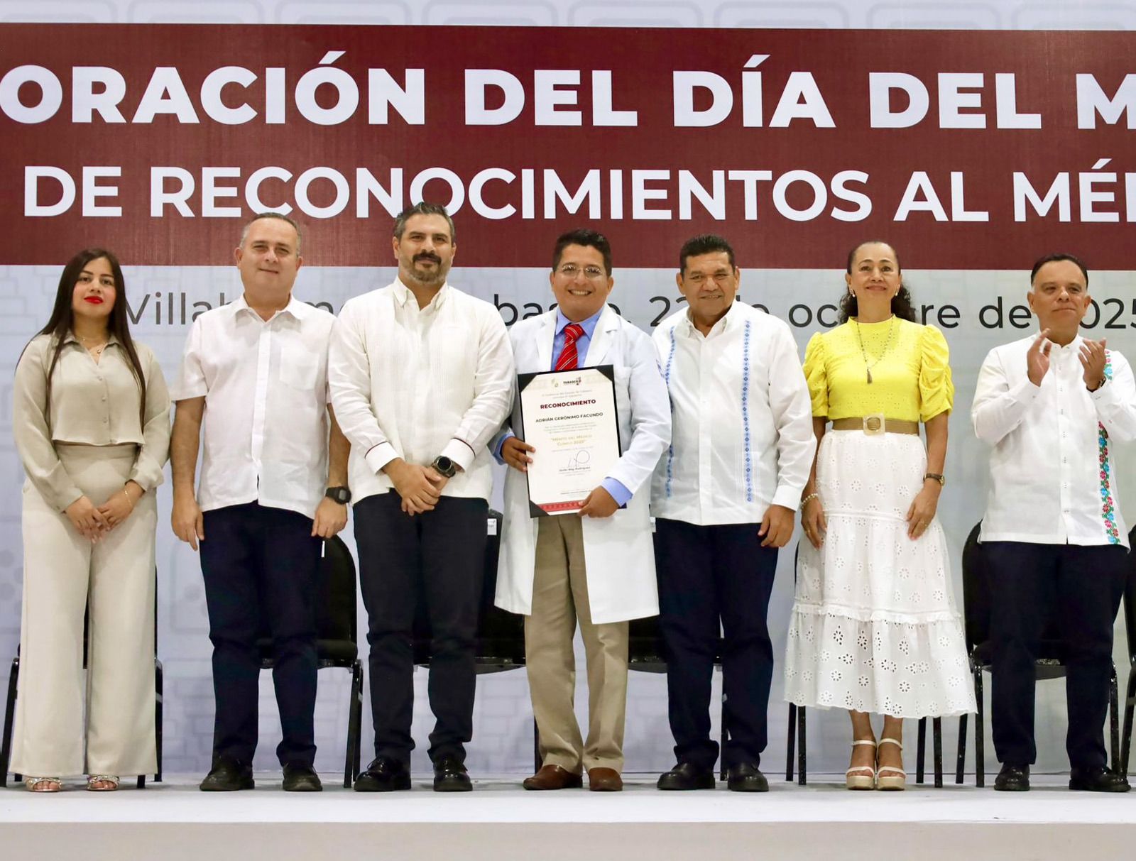 Además, se entregaron constancias a 25 médicos por su desempeño sobresaliente en hospitales, clínicas y centros de salud de la entidad, reconociendo su entrega cotidiana y su contribución a la consolidación del sistema de atención médica en Tabasco.
