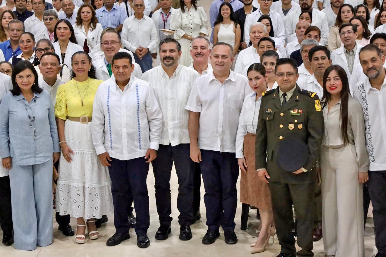 Al acto efectuado en el centro de Convenciones Tabasco 2000, asistieron el titular del Poder Judicial, Carlos Efrain Reséndez Bocanegra, el presidente de la Mesa Directiva del Congreso, Marcos Rosendo Medina Filigrana, y la presidenta del Sistema DIF Tabasco, Aurora Raleigh de la Cruz, reafirmando la unidad entre los poderes del estado, así como el compromiso compartido de reconocer y respaldar al personal de salud que con su labor fortalece el tejido social de Tabasco.
