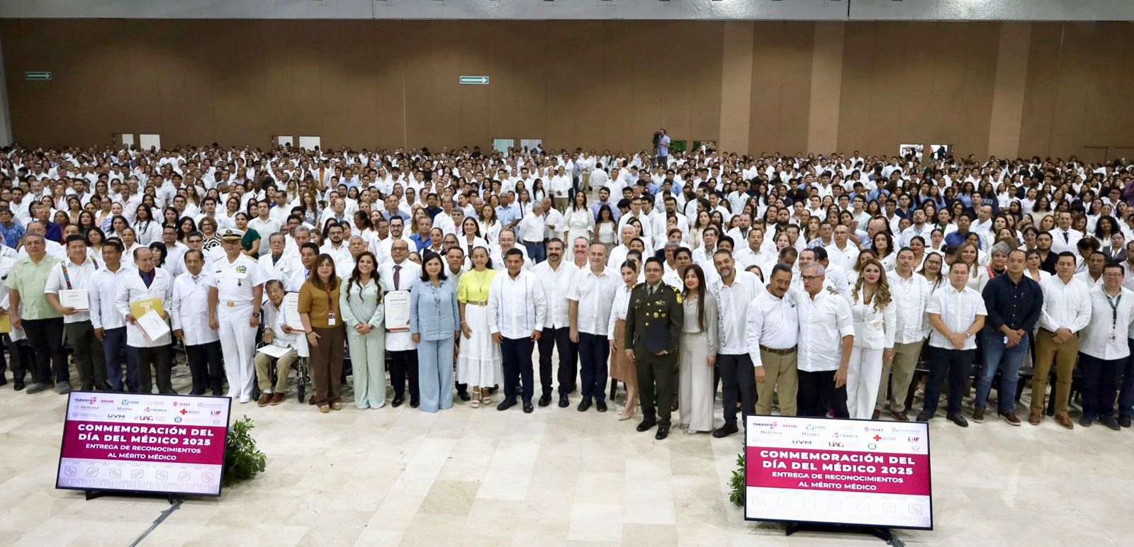 Con el objetivo de honrar la vocación, el compromiso y la entrega de quienes ejercen la medicina en Tabasco, el gobernador Javier May Rodríguez encabezó la ceremonia conmemorativa del Día del Médico 2025.