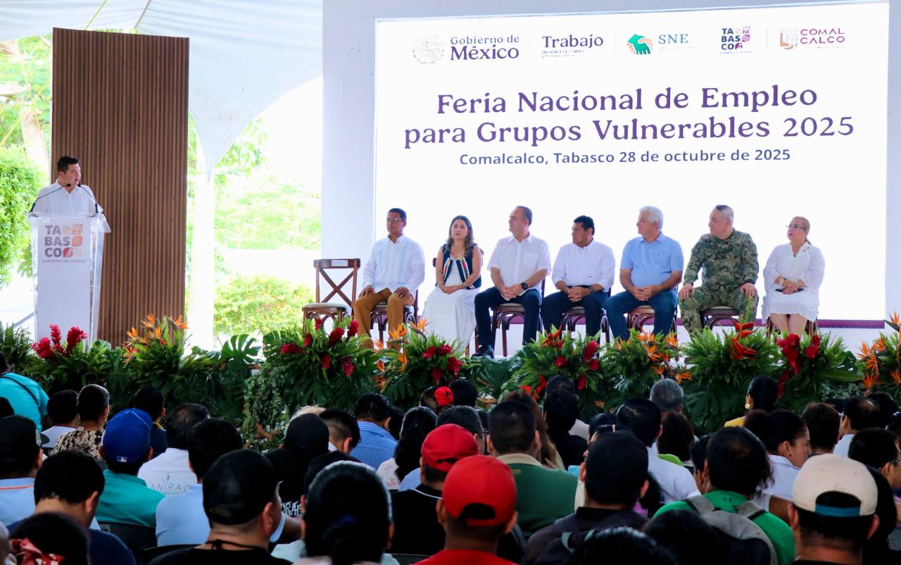 La Feria Nacional del Empleo para Grupos Vulnerables 2025 fue inaugurada por el gobernador Javier May Rodríguez, quien destacó que la inclusión transforma vidas y fortalece a la sociedad, porque un empleo digno es base de autonomía, bienestar y justicia social.