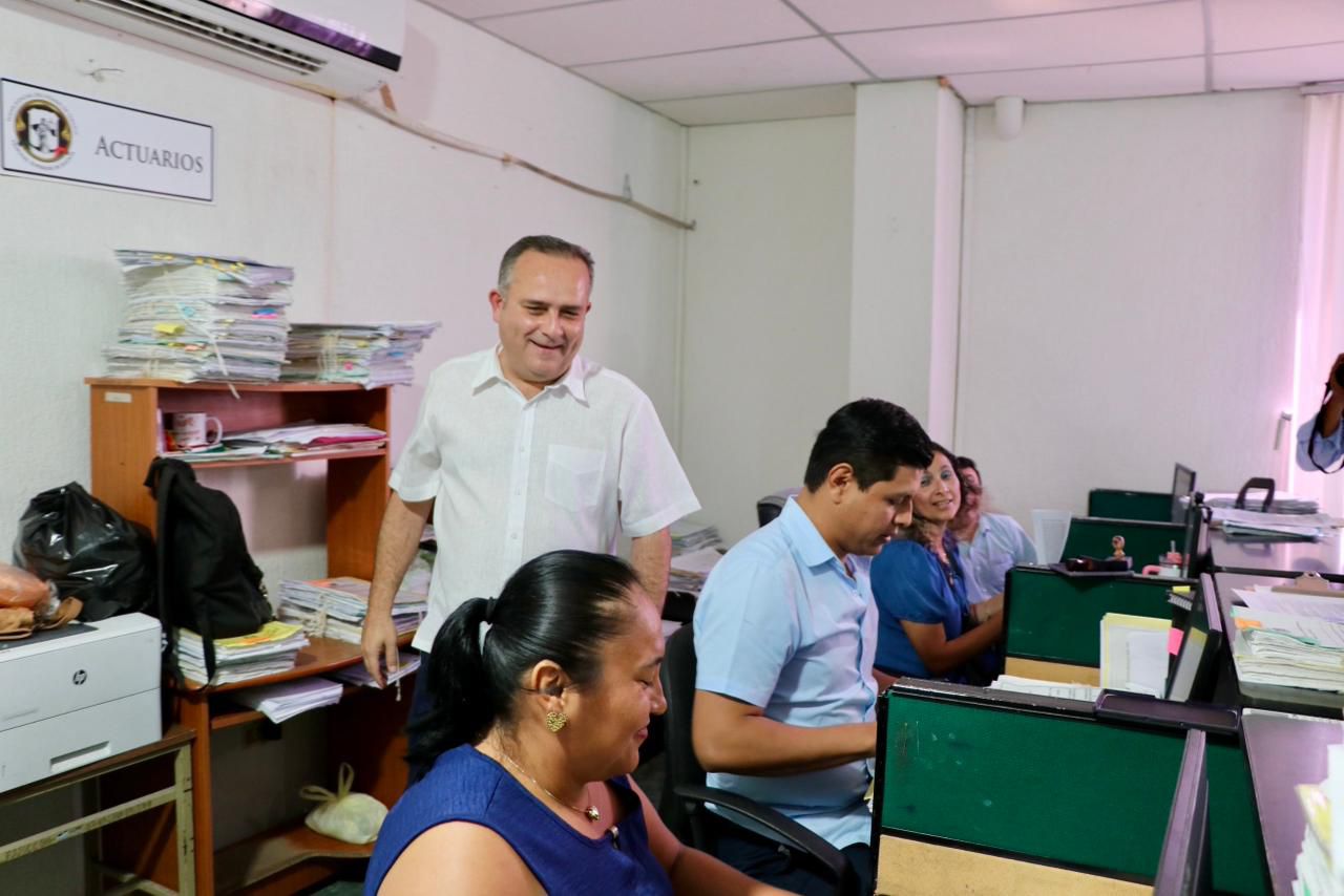 En seguimiento al programa de supervisión a los órganos jurisdiccionales del estado, el magistrado presidente del Tribunal Superior de Justicia (TSJ), Carlos Efrain Reséndez Bocanegra, visitó los juzgados civiles y de oralidad penal del municipio de Comalcalco. Durante el recorrido, constató las condiciones en que se desarrollan las labores judiciales y la atención al público, además de dialogar con las y los servidores judiciales para conocer de primera mano sus necesidades. El titular del Poder Judicial reconoció el compromiso del personal y reiteró que la mejora continua en la impartición de justicia es una prioridad institucional orientada a servir con empatía y eficiencia a la sociedad tabasqueña.