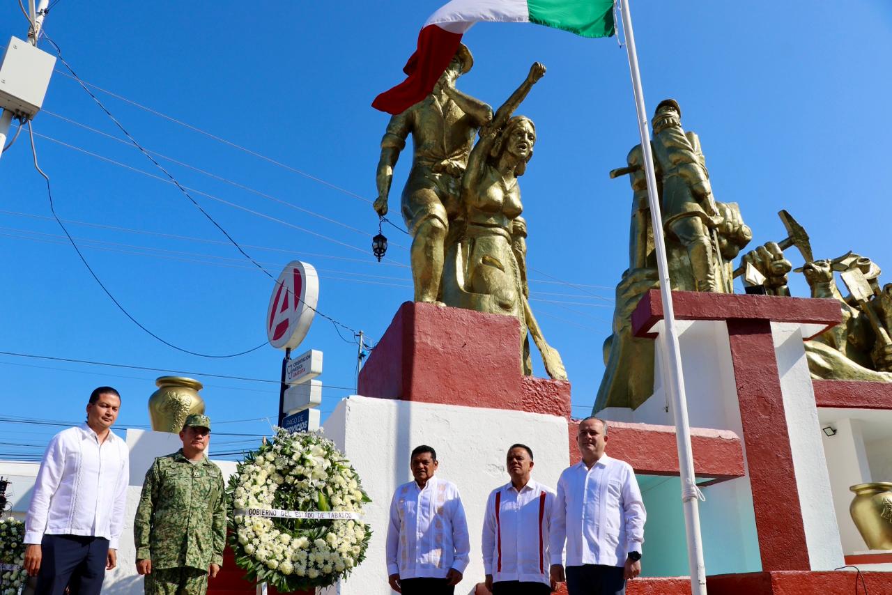Con unidad y respeto, el gobernador Javier May Rodríguez, el titular del Poder Judicial, Carlos Efrain Reséndez Bocanegra y los presidentes de la Junta de Coordinación Política (Jucopo), Jorge Orlando Bracamonte Hernández, y de la Mesa Directiva del Congreso local, Marcos Rosendo Medina Filigrana, así como la alcaldesa de Cunduacán, María de la Cruz López rindieron honores a quienes lucharon por la libertad reafirmando el compromiso de seguir construyendo un Tabasco con justicia, digno y orgulloso de su historia.
