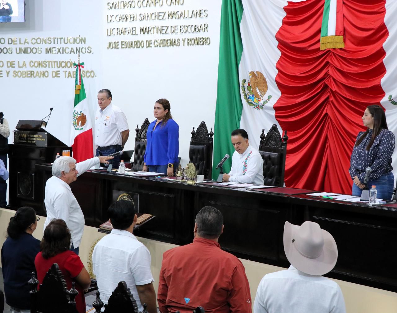 El secretario de Gobierno, José Ramiro López Obrador, compareció ante el pleno del Congreso del estado como parte de la glosa del Primer Informe de Gobierno de Javier May Rodríguez, en un acto que confirma la disposición de la administración estatal para transparentar su labor y rendir cuentas a los tabasqueños.