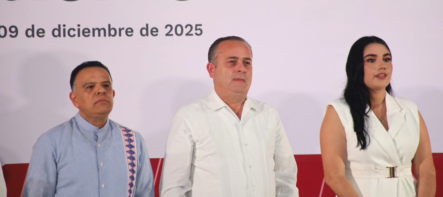 ante integrantes del Cabildo, acompañada por el gobernador Javier May