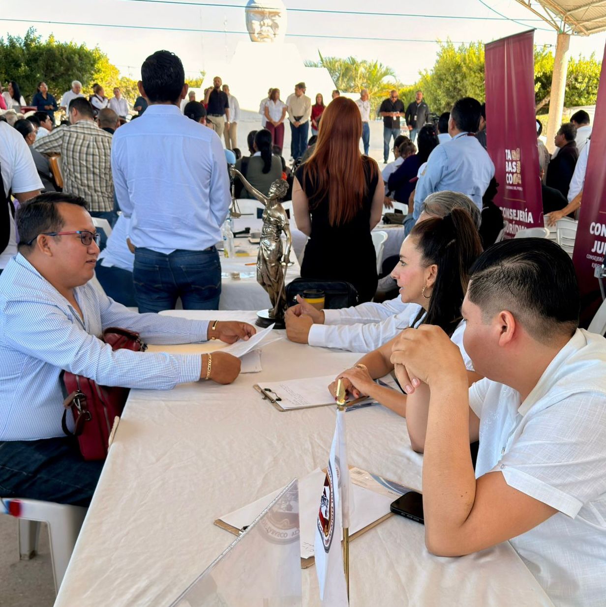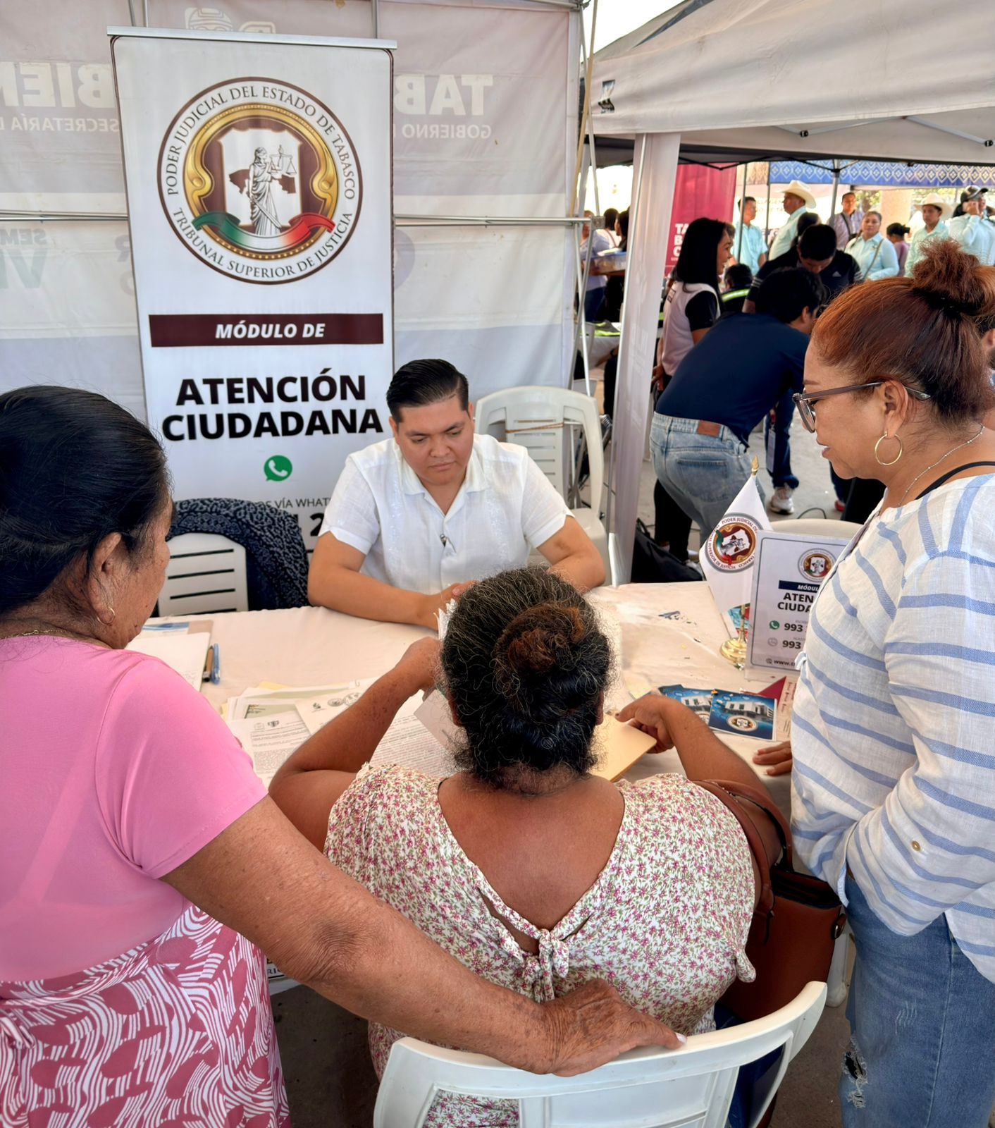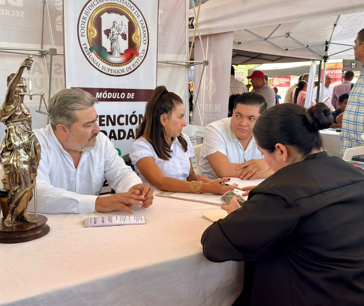 Acompañando al gobernador Javier May Rodríguez, el magistrado presidente del Tribunal Superior de Justicia (TSJ), Carlos Efrain Reséndez Bocanegra, encabezó la mesa de atención del Poder Judicial, donde refrendó que la justicia se construye desde el territorio, con presencia, escucha y cercanía.