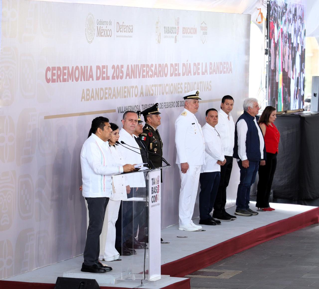 El acto realizado en Plaza de Armas fue encabezado por el gobernador Javier May Rodríguez, con la participación del titular del Poder Judicial, Carlos Efrain Reséndez Bocanegra; los presidentes de la Mesa Directiva y la Junta de Coordinación Política (Jucopo) del Congreso, Marcos Rosendo Medina Filigrana y Jorge Orlando Bracamonte Hernández, quienes refrendaron la unidad y el respeto entre los poderes del Estado.
