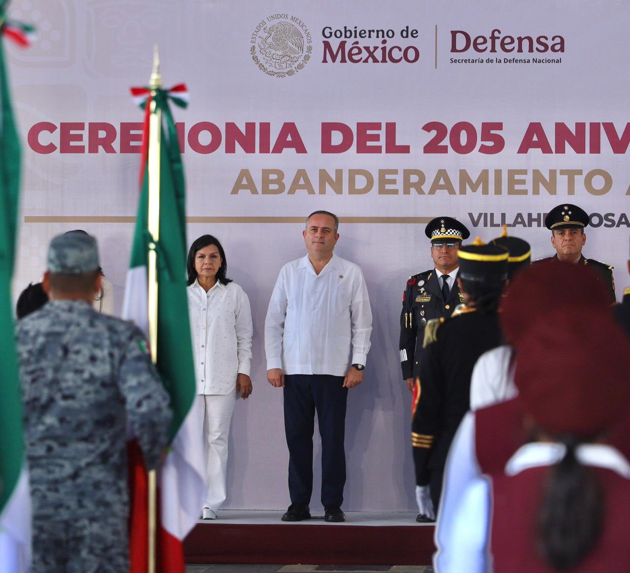 En la ceremonia participaron también el comandante de la Trigésima Zona Militar, Jesús Alejandro Adame Cabrera; el comandante de la Tercera Región Zona Naval, Juan Carlos Vera Salinas; Luis Andrés Gutiérrez Garnica, coordinador estatal de la Guardia Nacional; los secretarios de Gobierno, José Ramiro López Obrador; de Educación, Patricia Iparrea Sánchez; de Cultura, Aida Elba Castillo Santiago; y la alcaldesa de Centro, Yolanda Osuna Huerta.