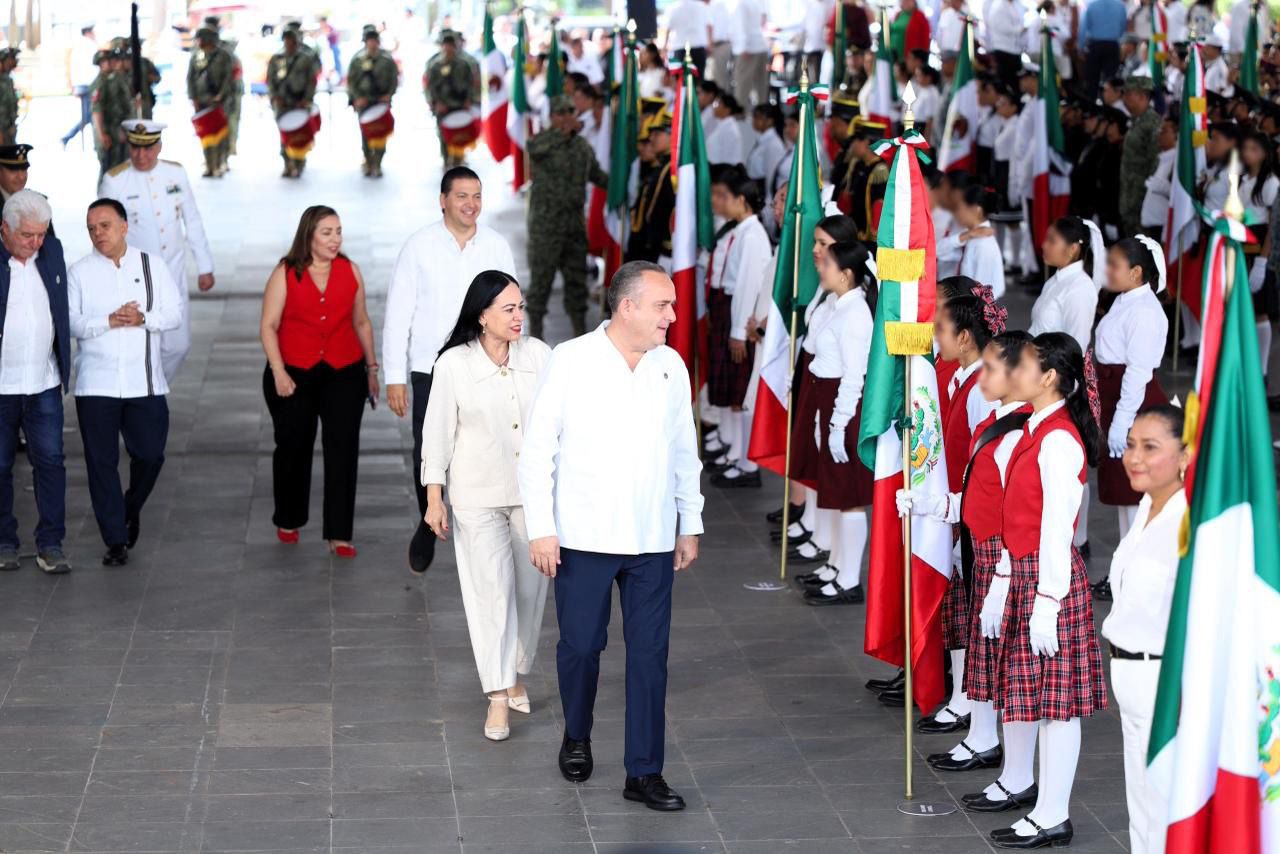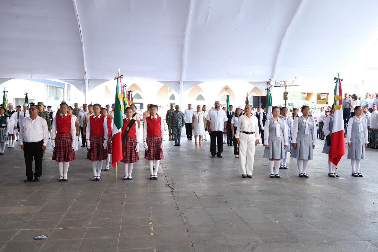 La ceremonia se realizó de manera simultánea con la conmemoración nacional encabezada desde el Campo Marte por la presidenta Claudia Sheinbaum Pardo, con quien se enlazaron vía remota, en un acto que simbolizó la cohesión institucional y el compromiso compartido con la soberanía nacional.