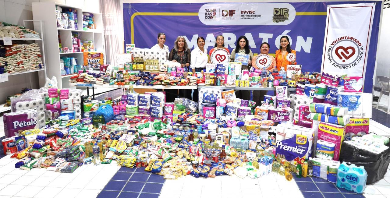 En el Maratón de Ayuda 2026 organizado por el Sistema DIF Tabasco, su presidenta, Aurora Raleigh de la Cruz, convocó a la ciudadanía a donar diversos artículos para respaldar a los 24 centros asistenciales y grupos de atención prioritaria de Tabasco; el Voluntariado del Tribunal Superior de Justicia (TSJ), que encabeza la licenciada Paola Hernández de Reséndez, realizó una aportación en nombre de las y los integrantes de la familia judicial durante la jornada, reafirmando así el compromiso solidario del Poder Judicial con quienes más lo necesitan.