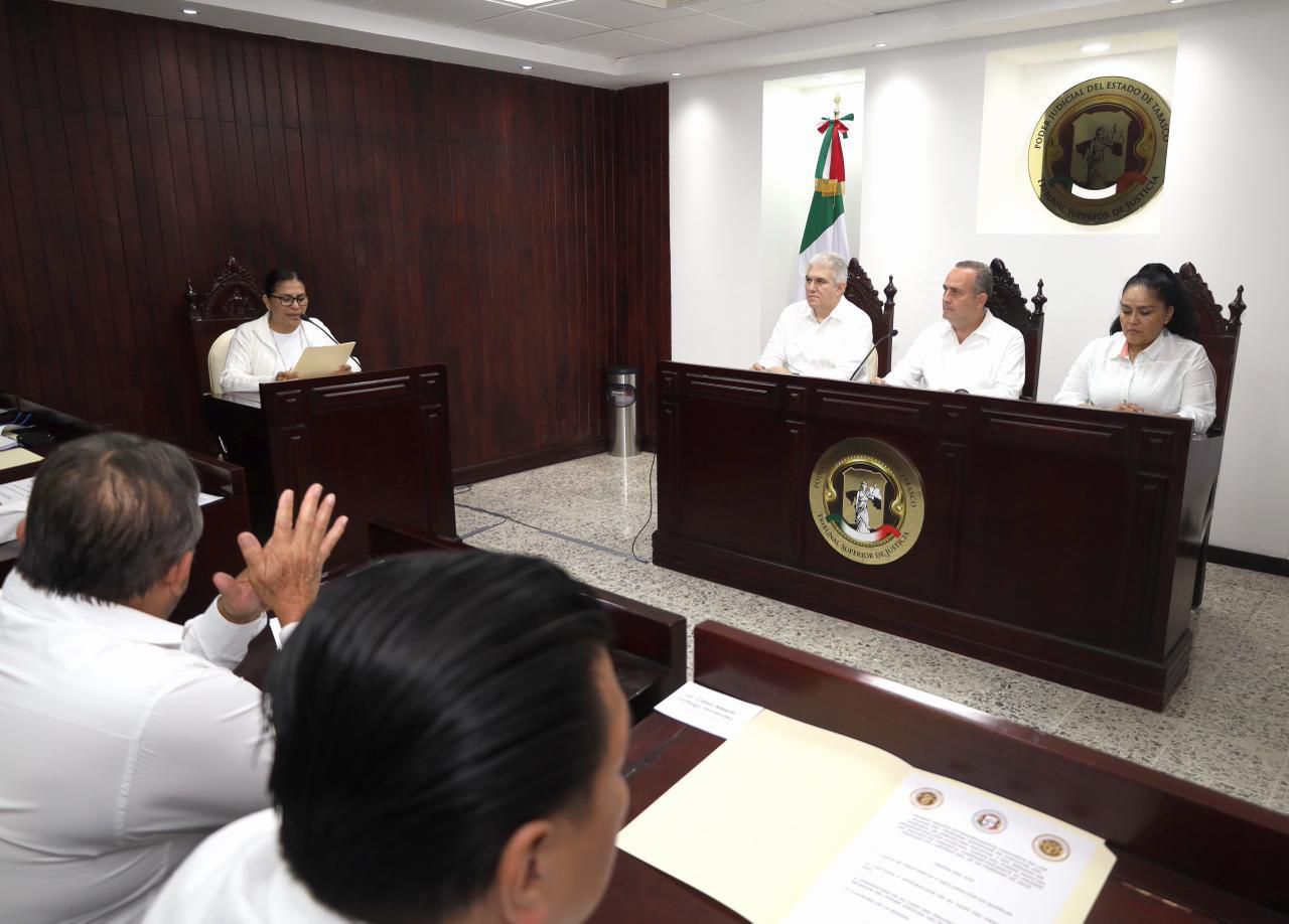 -De manera unánime, los plenos del Tribunal Superior de Justicia (TSJ), el Tribunal de Disciplina Judicial (TDJ), así como el Órgano de Administración Judicial (OAJ) aprobaron la expedición del nuevo reglamento interior del Poder Judicial del Estado de Tabasco, que establece la organización, integración, atribuciones y funcionamiento de los órganos que lo conforman, de acuerdo con la nueva estructura derivada de la reforma judicial.