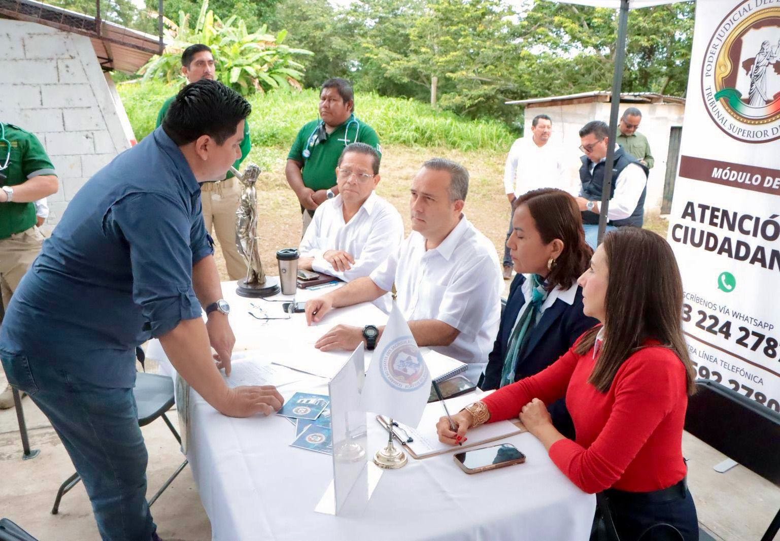 El gobernador Javier May Rodríguez encabezó una nueva jornada de Atención al Pueblo en Territorio, en el parque central del ejido Tierra y Libertad, en el municipio de Cunduacán donde con integrantes de su gabinete y representantes de los poderes públicos, escuchó y atendió de manera directa a la ciudadanía.