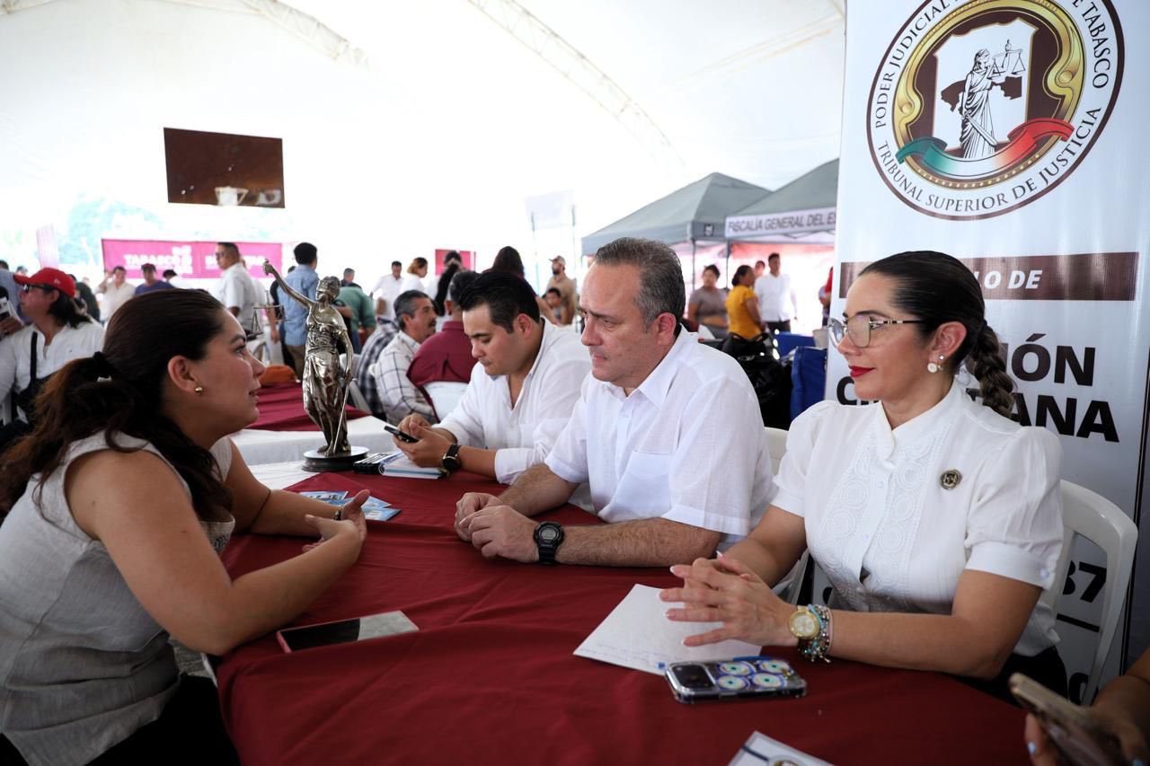 El mandatario estatal mencionó la suma del Poder Judicial y la asistencia del magistrado presidente del Tribunal Superior de Justicia de Tabasco (TSJ), Carlos Efrain Reséndez Bocanegra, en este encuentro con la población. Subrayó el cambio que representa que las autoridades judiciales participen directamente en estos ejercicios de cercanía con la gente: “Ahora, en esta nueva forma de servirle al pueblo, los magistrados ya no están en las oficinas. Antes no se les veía, no se les conocía. Hoy nos acompaña el presidente del Tribunal Superior de Justicia”.