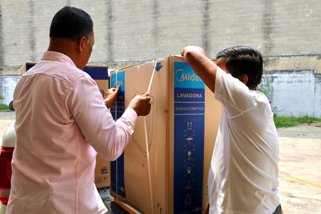 artículos electrónicos y electrodomésticos, tales como bocinas, lavadora,