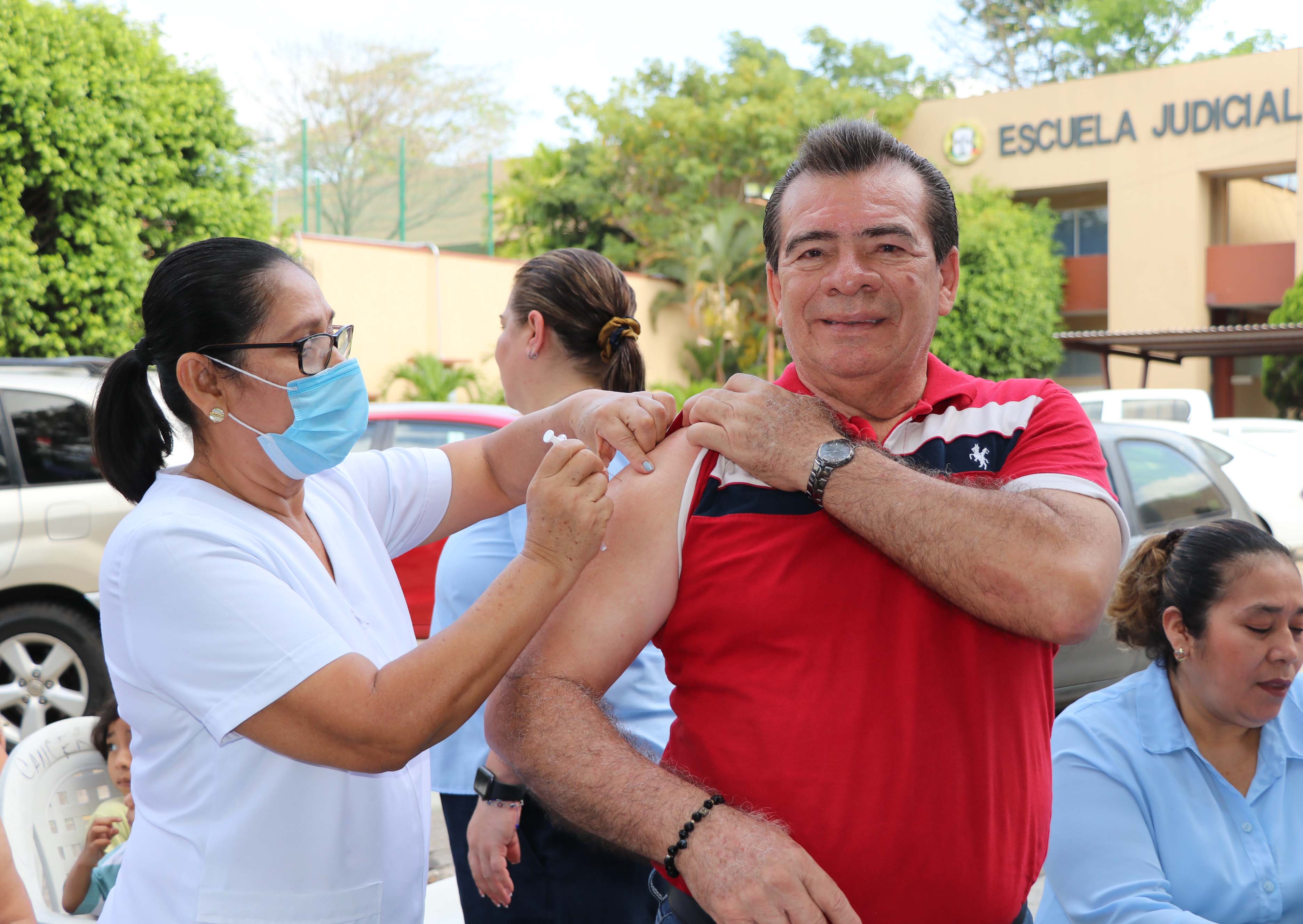 En un esfuerzo conjunto, el Voluntariado del Tribunal Superior de Justicia (TSJ) y la Secretaría de Salud concretaron la segunda jornada del programa de vacunación 2023, en favor de los trabajadores del Centro de Justicia Civil y Familiar de la colonia Atasta, donde se aplicaron 200 dosis contra neumococo y cien contra influenza, como medida para proteger al recurso más valioso de la institución, el recurso humano.