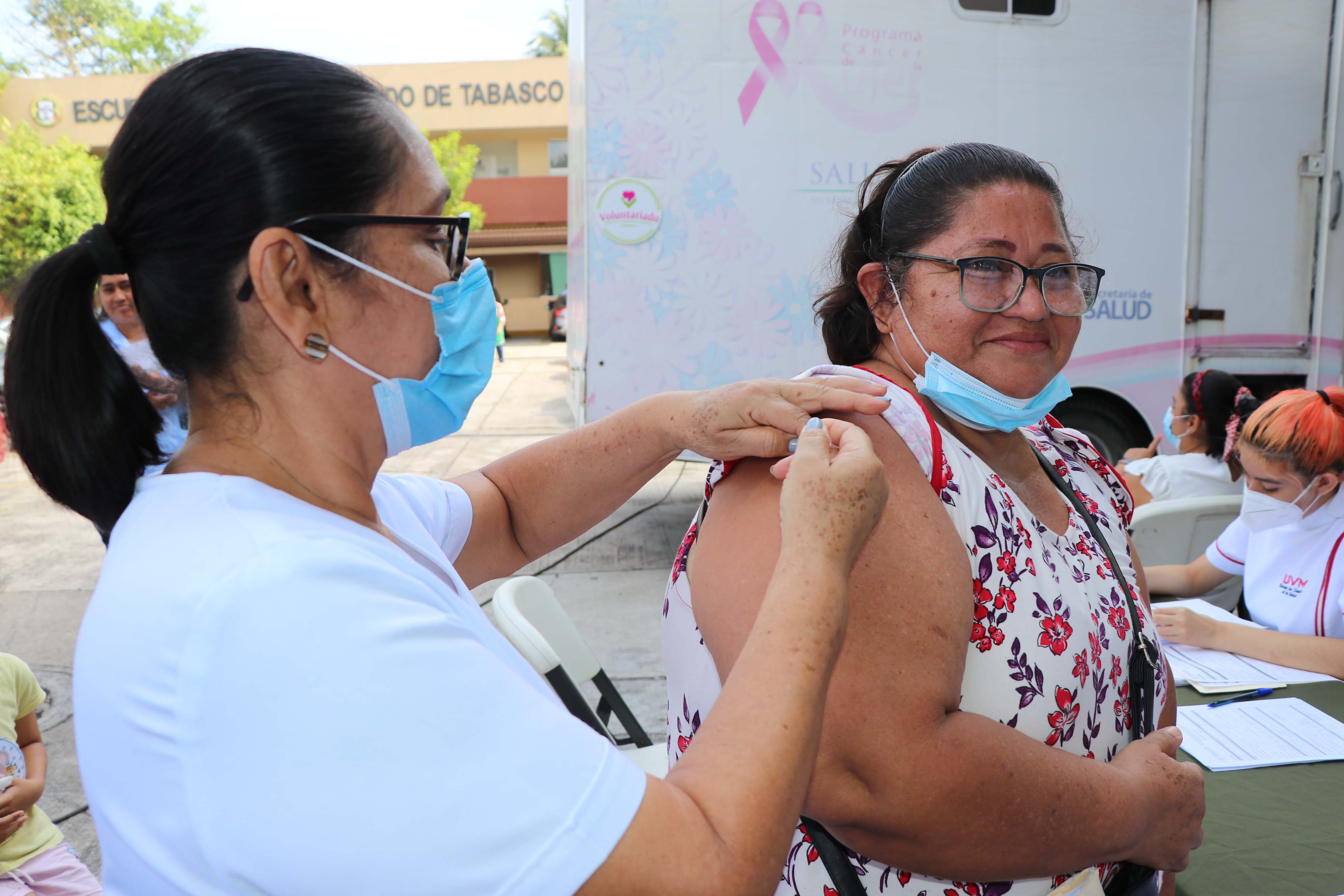 Alifonsia Rodríguez Acosta, habitante de la ranchería Corregidora Ortiz, tercera sección, quien realizaba un trámite en uno de los juzgados, afirmó que vio el módulo y se acercó a preguntar. Le checaron la presión arterial, la glucosa, la vacunaron y le tomaron la muestra para el papanicolaou.