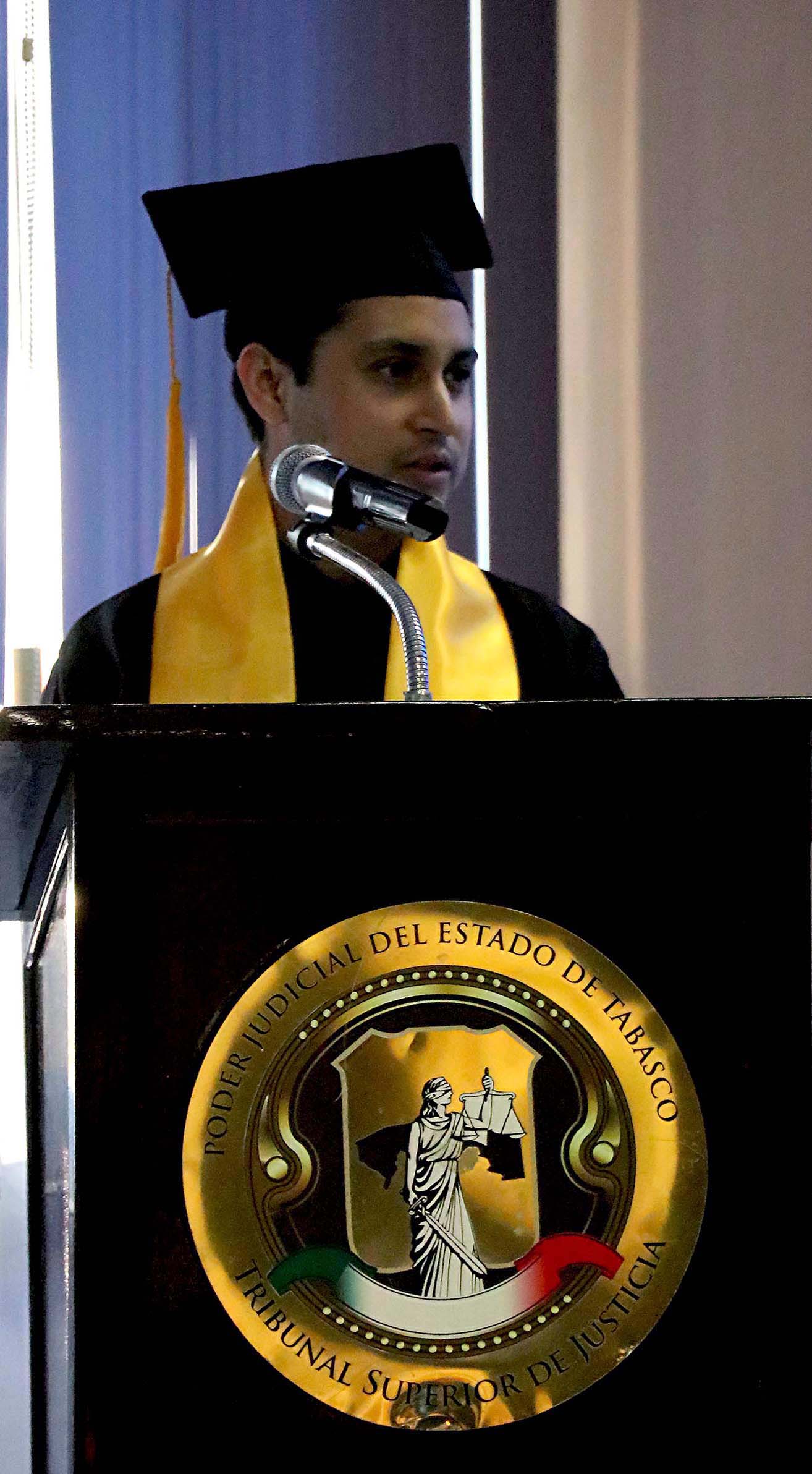 A nombre de los egresados, Aarón Richarte García, el cual se graduó como doctor en Derecho Judicial, resaltó que la institución abriera esta especialidad para lograr una sólida formación disciplinaria con alto sentido crítico, así como continuar la capacitación en la investigación.