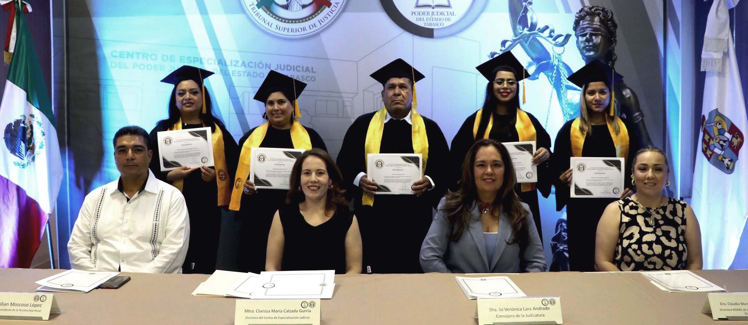 Veintiséis egresados de estudios de postgrado del Centro de Especialización Judicial recibieron constancias de terminación de estudios, con lo que suman 87 los especialistas los cuales concluyeron un doctorado, maestría, especialidad o diplomado en el ámbito del Derecho o los sistemas de justicia para adolescentes y de solución alternativa de controversias en los cinco años recientes.