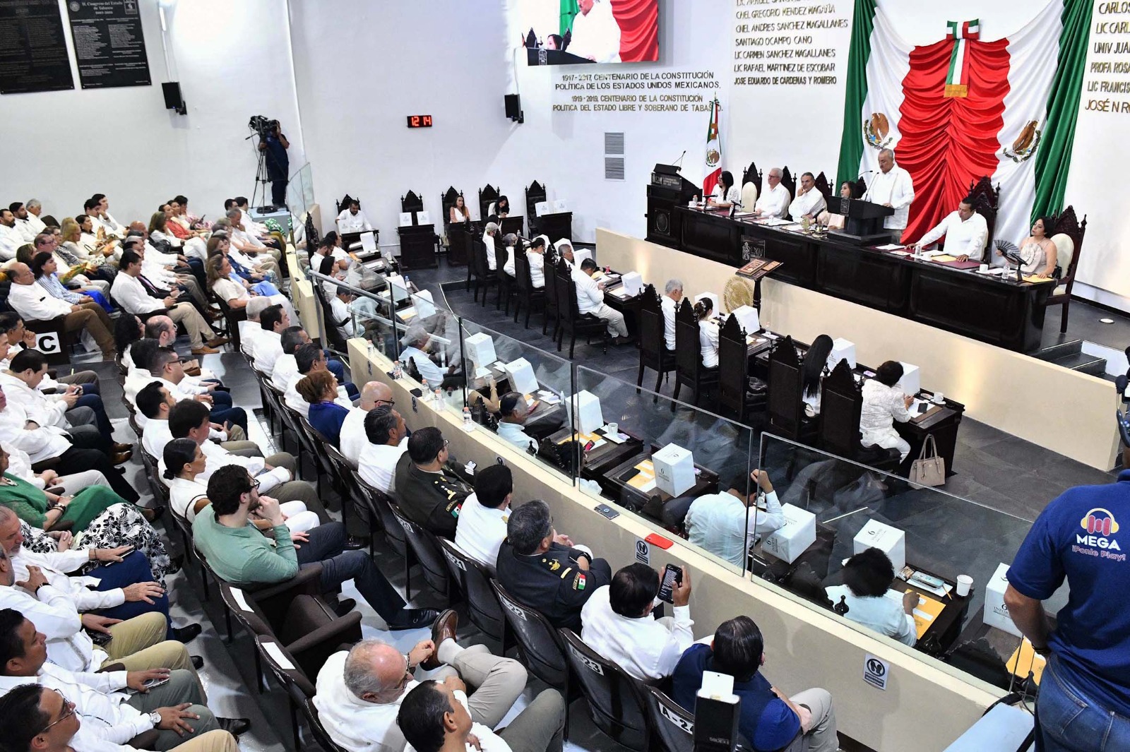 la sesión solemne de la LXIV Legislatura del Congreso local en la que el