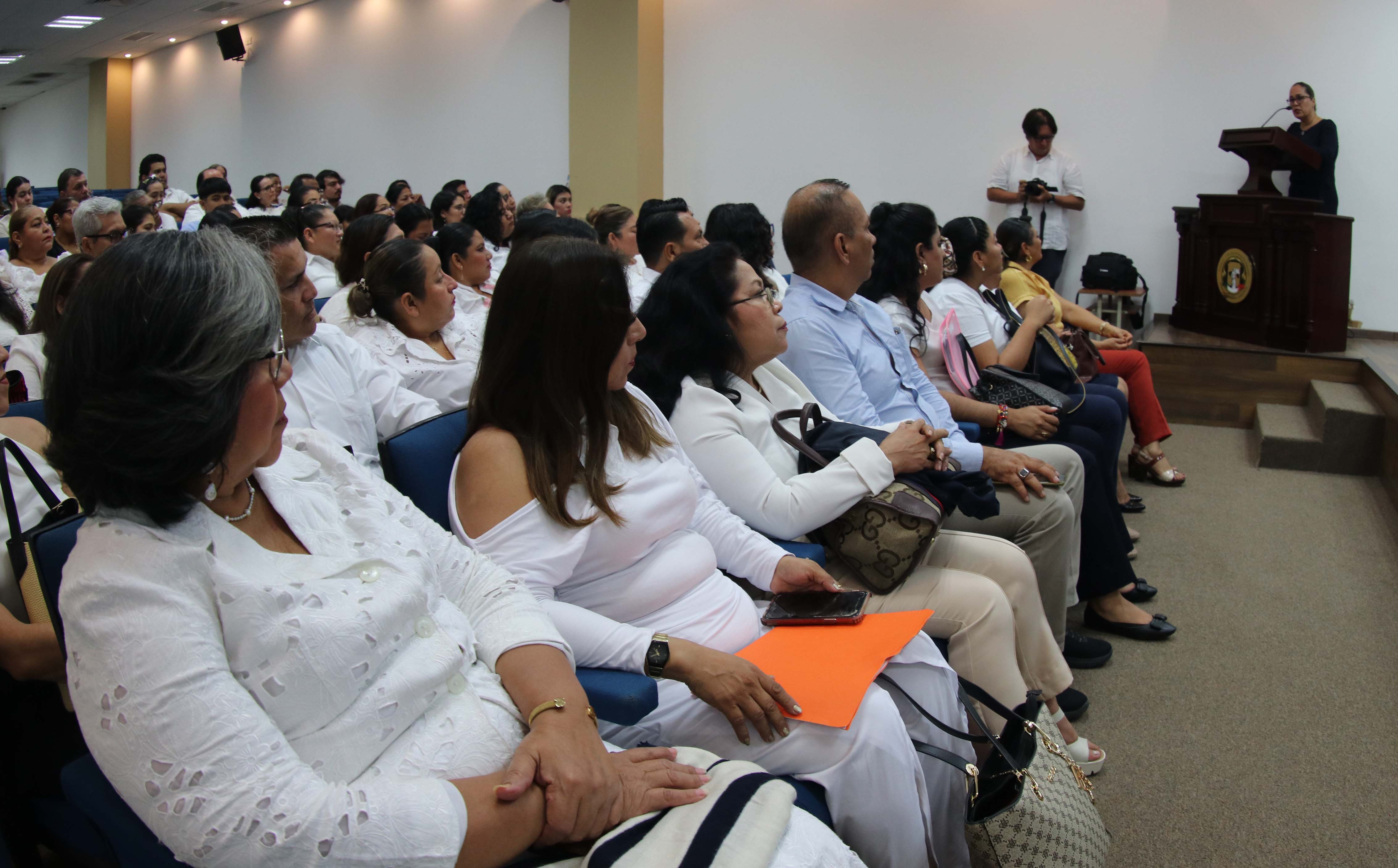 nombre de los egresados, la abogada María de los Ángeles Ligonio Alejandro agradeció