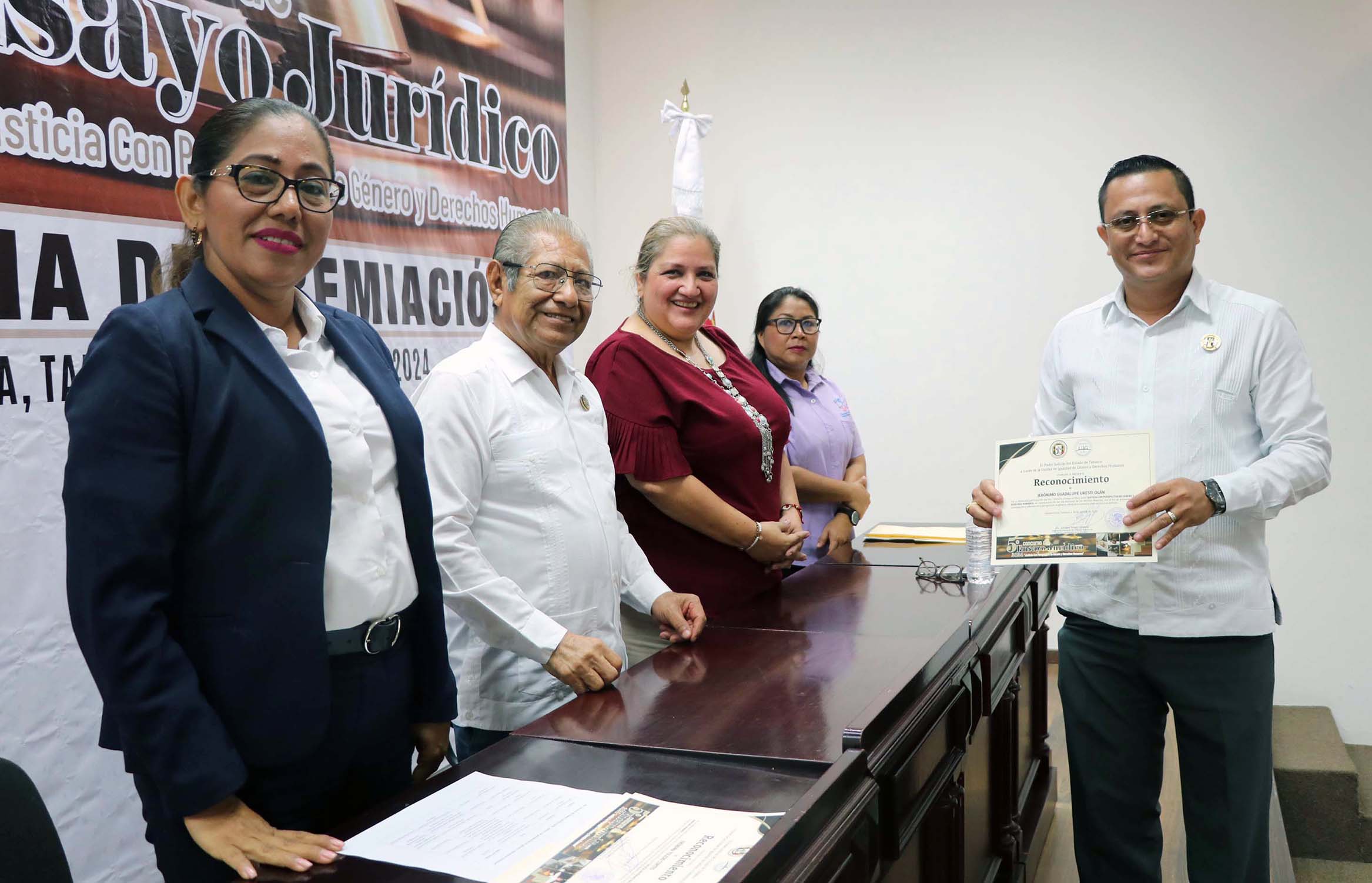 La profesora investigadora de la UJAT mencionó que un ensayo es una reflexión, una propuesta sobre algo ya dado en Derecho, pero que genera una metodología o nueva aportación para la solución de un conflicto, e indicó que la ganadora y quienes recibieron constancias de participación, entre ellos la jueza segunda civil de Cunduacán , Verónica Luna Martínez, fueron determinados con base en el cumplimiento de la convocatoria y formalidades metodológicas.