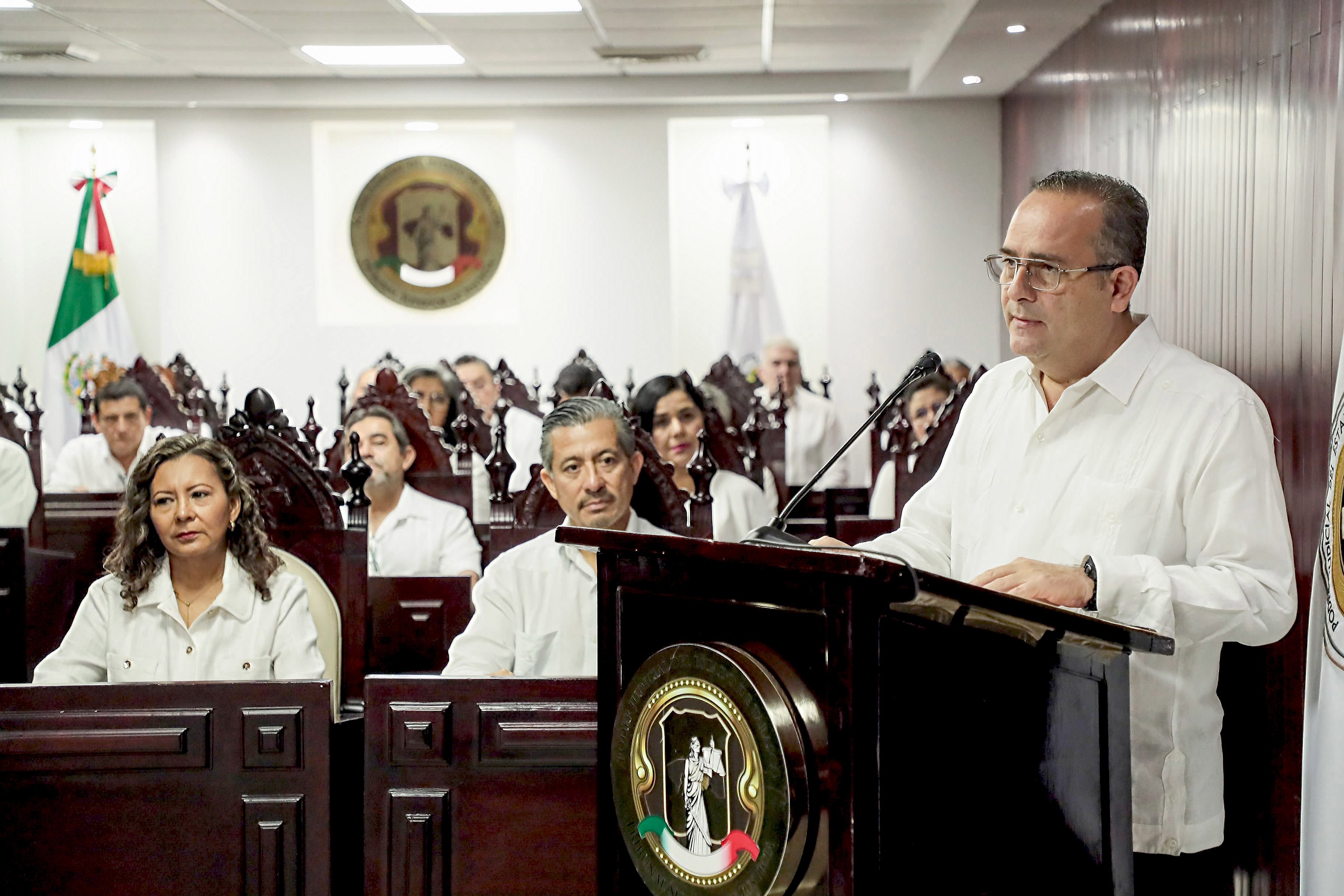En el salón de plenos Eduardo Alday Hernández, el magistrado Efrain