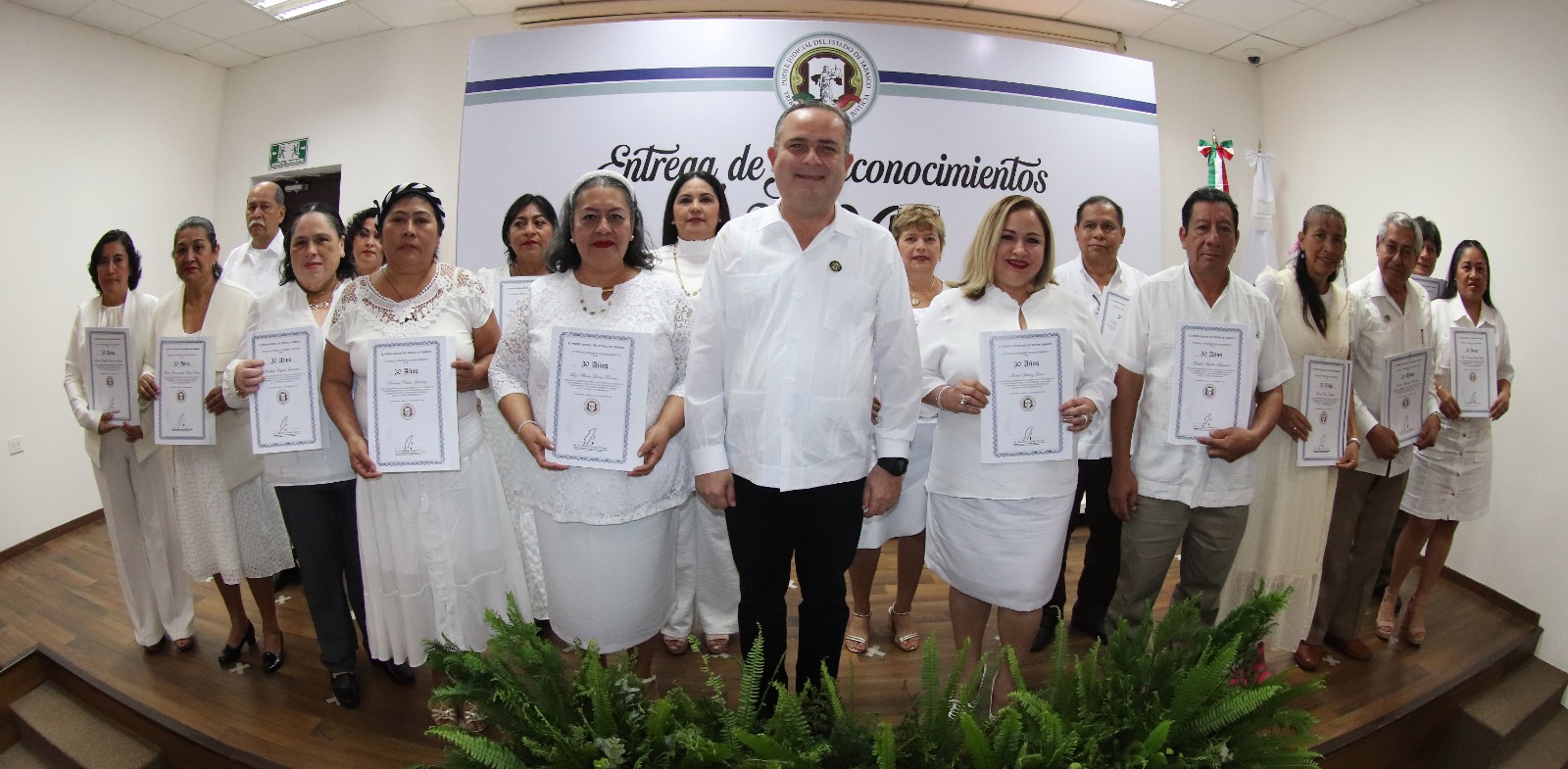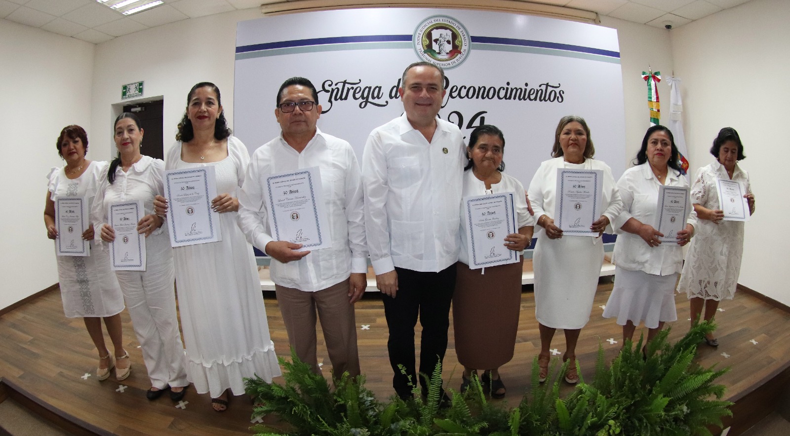 En una expresión de gratitud, el Poder Judicial de Tabasco reconoció la capacidad profesional y vocación de 88 servidores judiciales que cumplieron 15, 20, 30 y 40 años de servicio, y designó juez del año a Janeth Pérez Sánchez, quien labora en un tribunal de enjuiciamiento, a los que el presidente del Tribunal Superior de Justicia (TSJ), Efrain Reséndez Bocanegra, agradeció “su fidelidad y perseverancia, pues son ejemplo de un compromiso profundo hacia la justicia”.