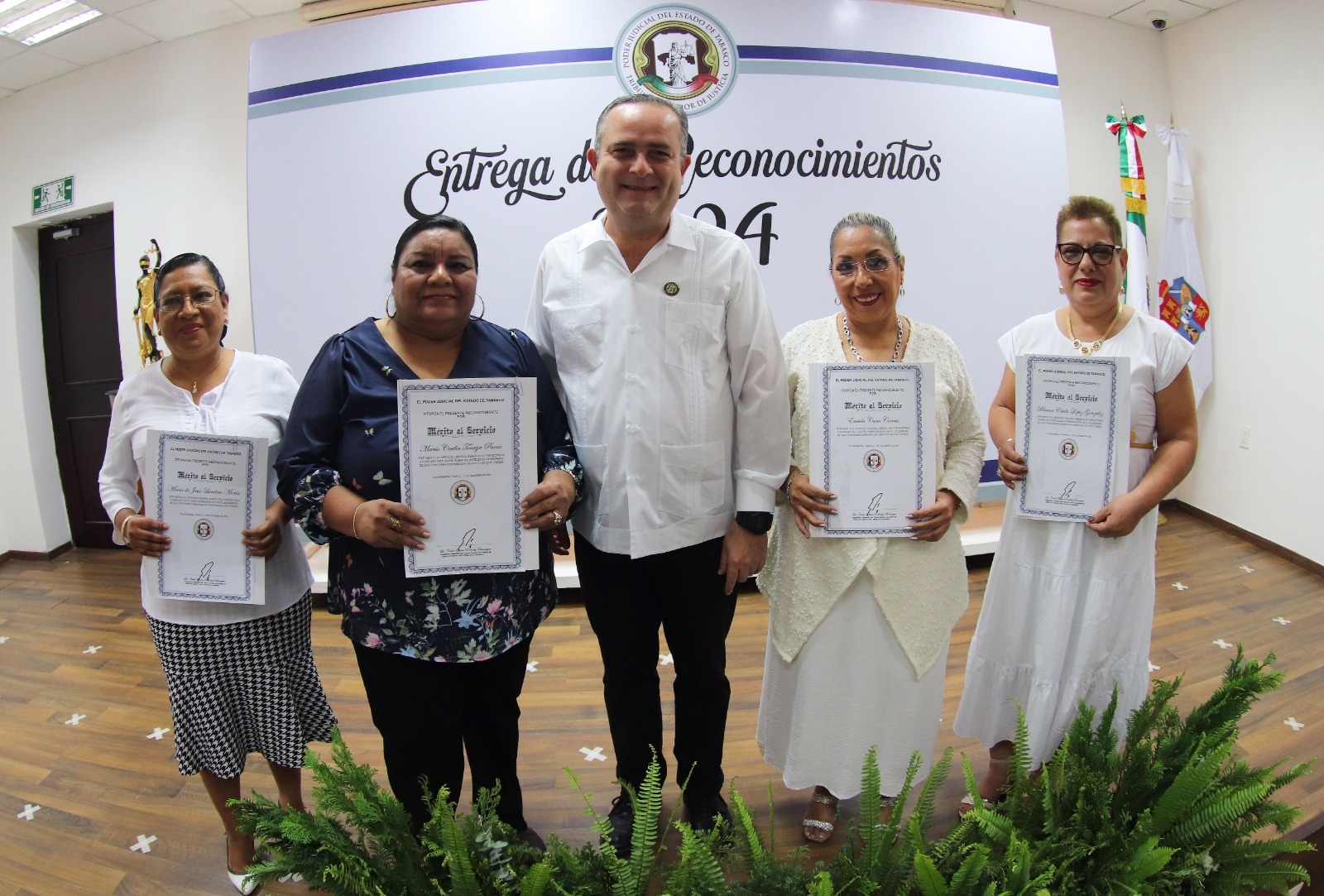 Al desearles felices fiestas, en compañía de sus familias, indicó que el mérito en el trabajo, con el que se distinguió a cuatro servidoras judiciales --algunas quienes han laborado hasta por 28 años en la institución--, refleja capacidad profesional y vocación de servicio orientada a garantizar el bienestar social, salvaguardar el Estado de derecho, así como el buen funcionamiento del tribunal.