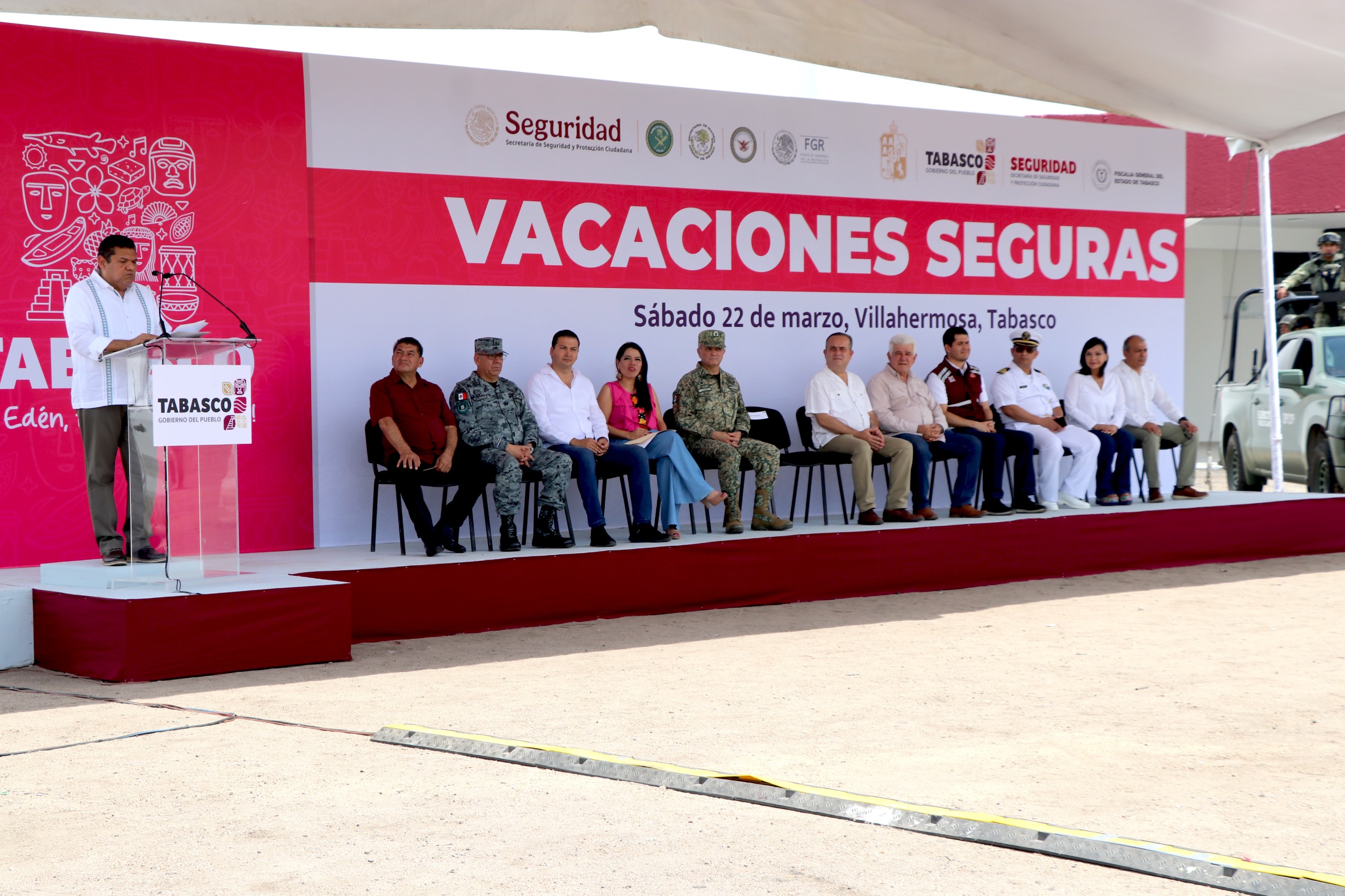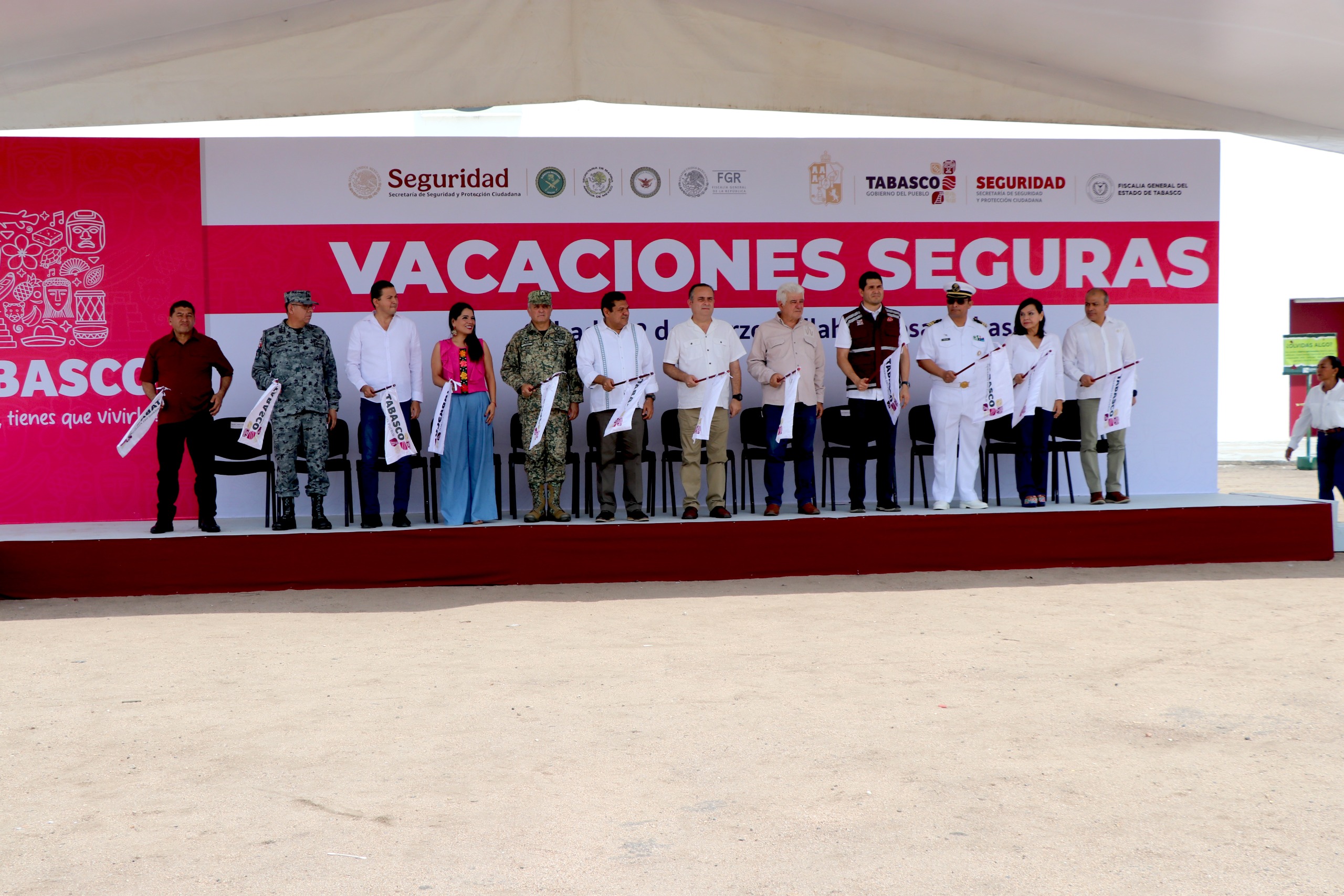 Tabasco está preparado para recibir a los turistas locales, nacionales y extranjeros en condiciones de paz, orden y bienestar, aseguró el gobernador Javier May Rodríguez al dar el banderazo de inicio al operativo “Vacaciones Seguras”, que tiene como objetivo cuidar lo más valioso que tenemos, nuestra gente y quienes nos visitan para disfrutar de las maravillas naturales del estado.