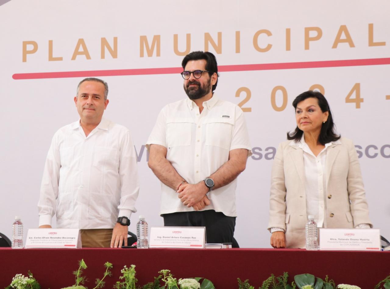 La alcaldesa de Centro, Yolanda Osuna Huerta, presentó el Plan Municipal de Desarrollo 2024-2027, que plantea un gobierno con finanzas sanas, gobernanza, participación social, humanista, igualitario, impulsor del bienestar social y con infraestructura que mejore la vida de sus habitantes.
