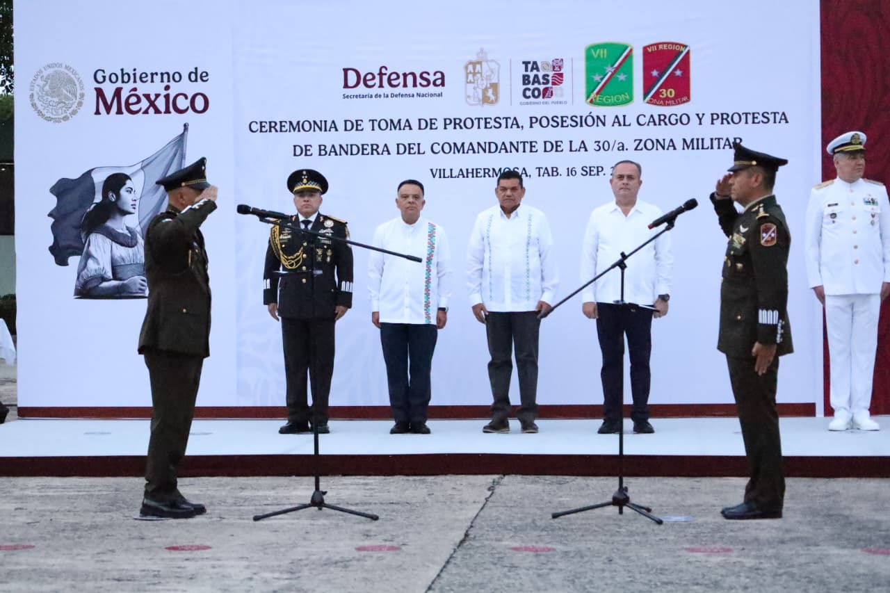 En una ceremonia oficial tal como lo dicta el protocolo militar este martes se realizó la toma de protesta, posesión al cargo y protesta de bandera del general de Brigada de Estado Mayor, Jesús Alejandro Adame Cabrera como comandante de la Trigésima Zona Militar.
