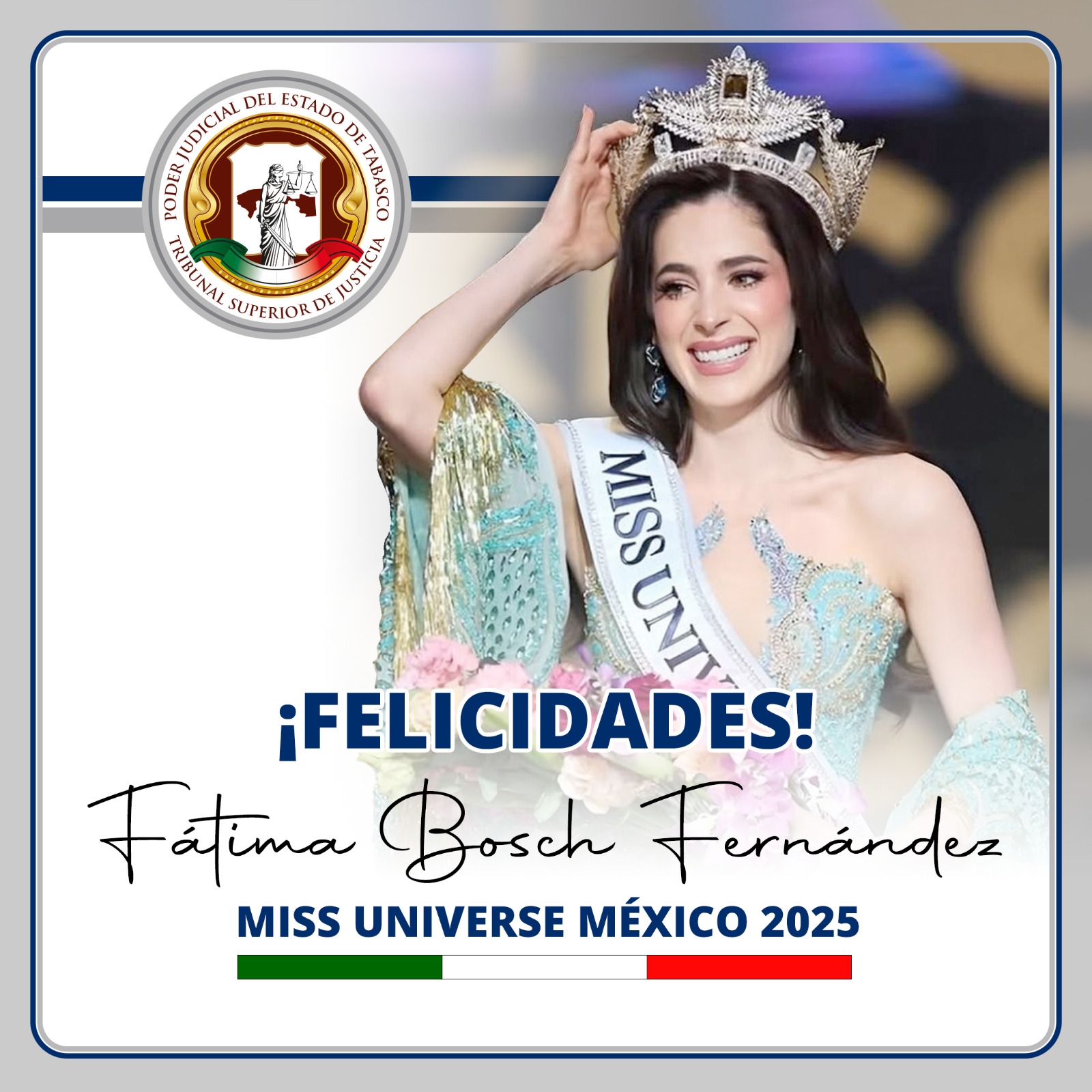 El Poder Judicial del Estado de Tabasco felicita a Fátima Bosch Fernández por este importante logro que la distingue a nivel nacional