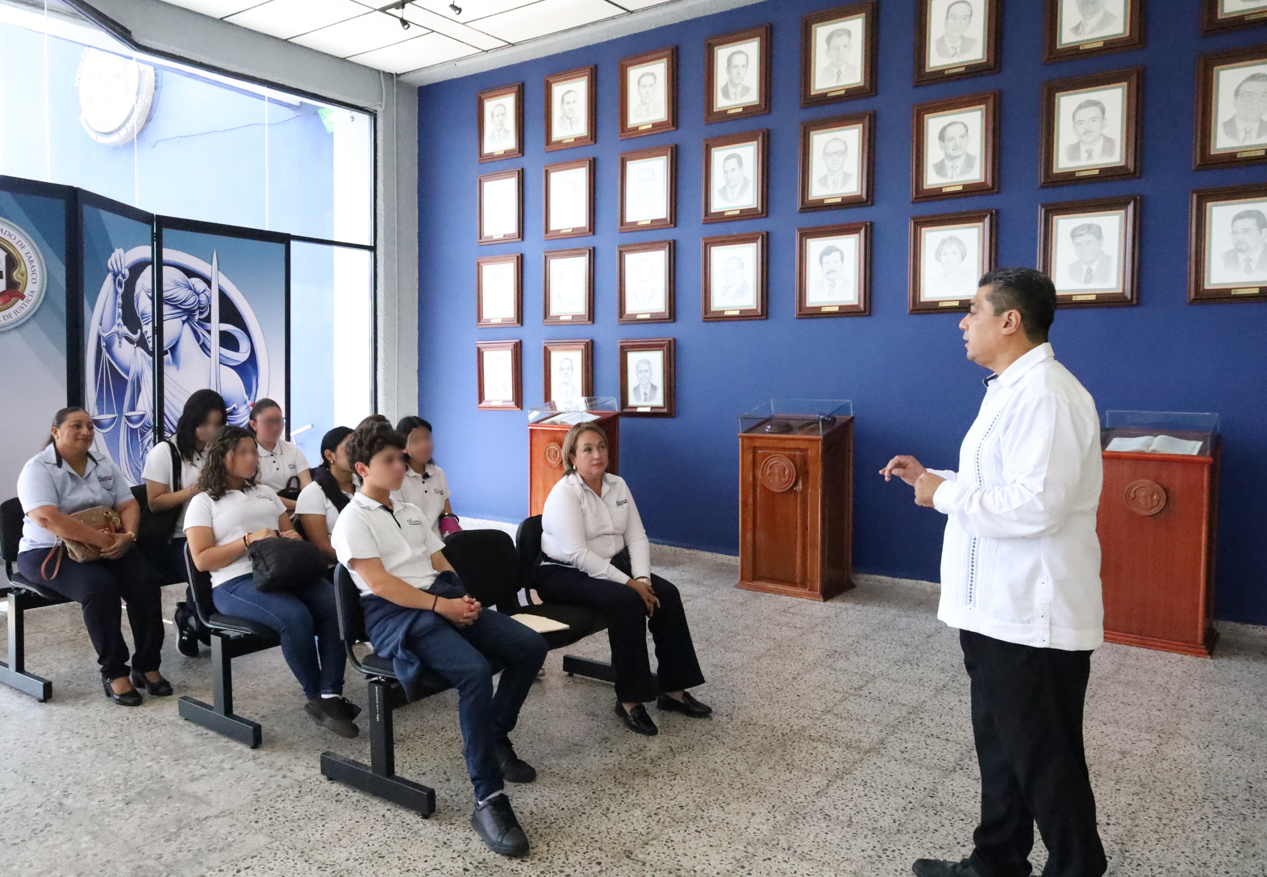 Estudiantes del quinto semestre de preparatoria del Colegio Champal recorrieron las instalaciones del Tribunal Superior de Justicia (TSJ), como parte del programa de visitas guiadas para acercar a la juventud al conocimiento del Derecho y la administración de justicia.