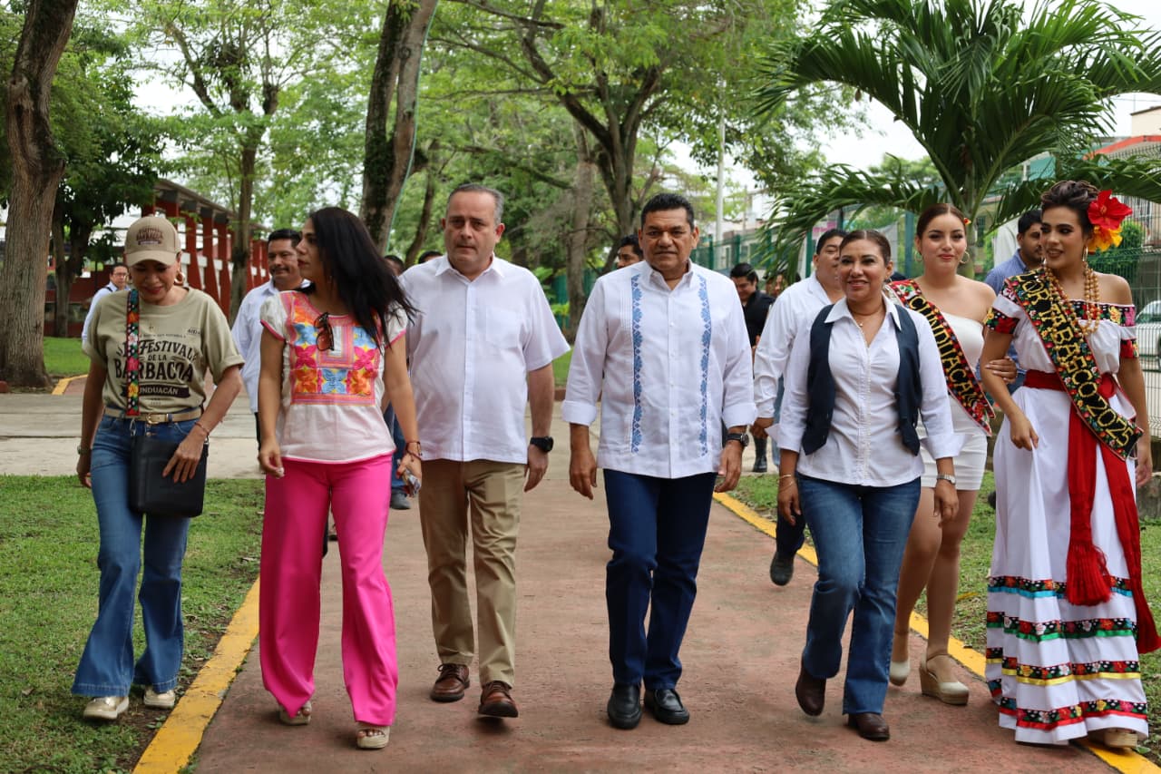 El gobernador Javier May Rodríguez y el magistrado presidente del Tribunal Superior de Justicia (TSJ), Carlos Efrain Reséndez Bocanegra, recorrieron con la alcaldesa de Cunduacán, María de la Cruz López, los pabellones del Primer Festival de la Barbacoa en ese municipio, el cual se celebra del 29 al 31 de agosto.