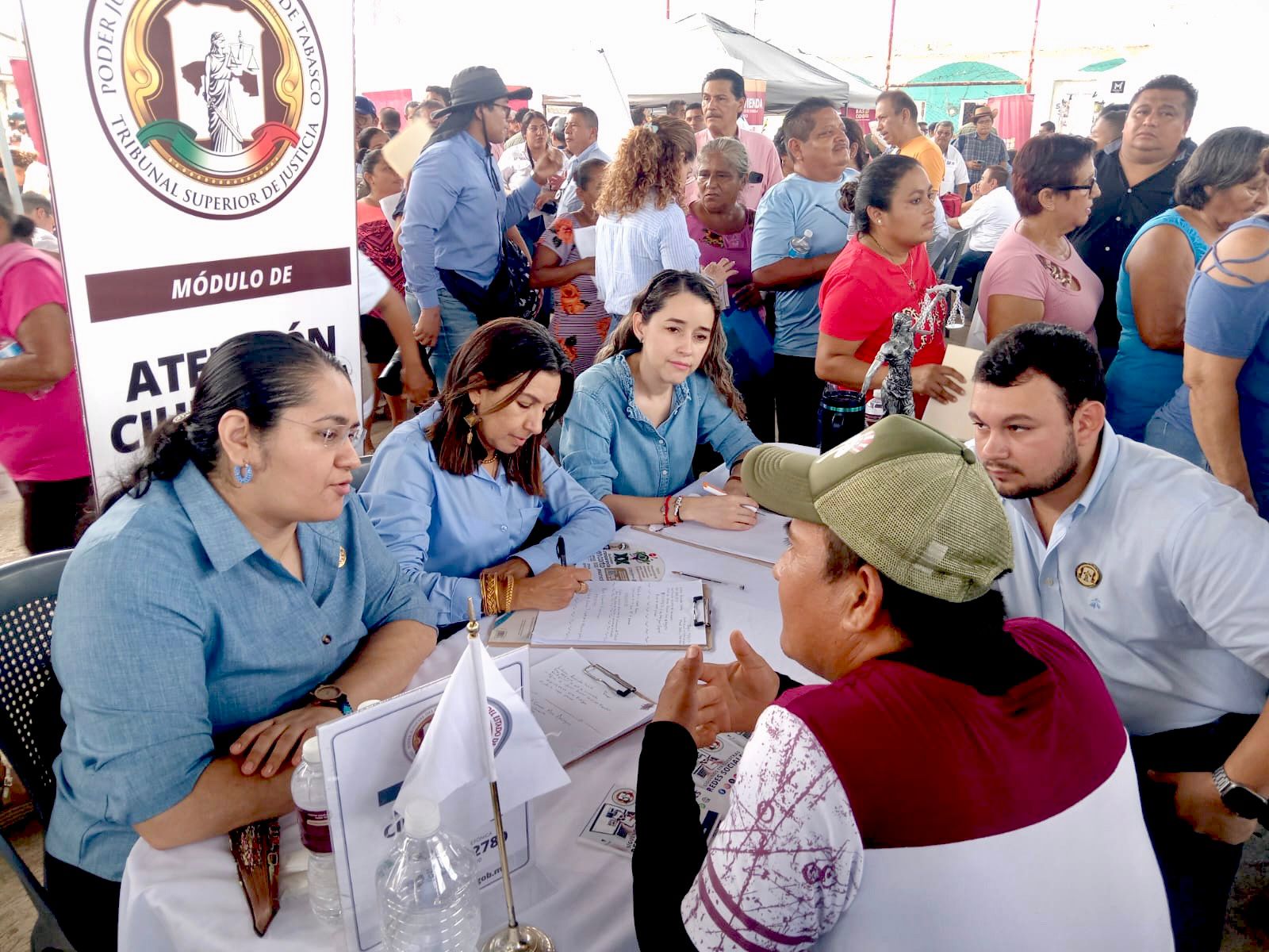Funcionarios del Tribunal Superior de Justicia (TSJ), acudieron este jueves a las Jornadas de Atención al Pueblo en Territorio que encabezó el gobernador Javier May Rodríguez en el ejido Manuel Buelta y Rayón de Teapa.