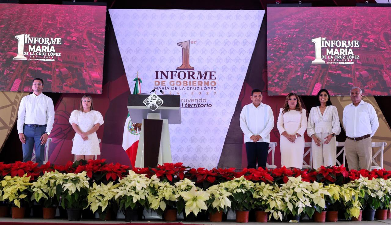 El magistrado presidente del Tribunal Superior de Justicia (TSJ), Carlos Efrain Reséndez Bocanegra, atestiguó la entrega del Primer Informe de Labores de la alcaldesa de Cunduacán, María de la Cruz López, al cual asistió el gobernador Javier May Rodríguez