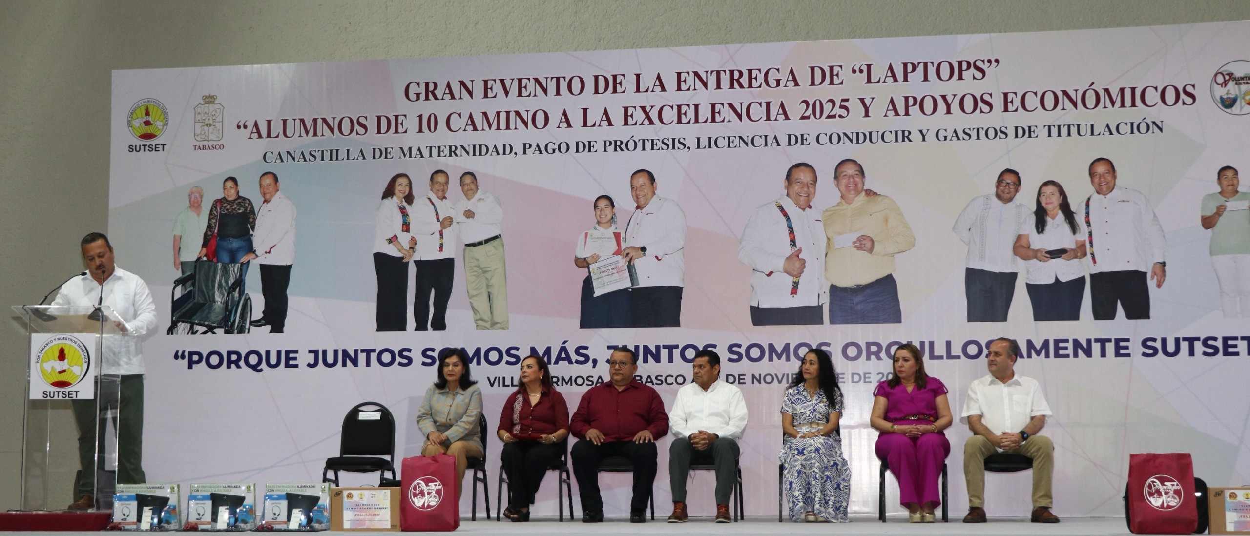 El Sindicato Único de Trabajadores al Servicio del Estado (SUTSET), que dirige René Ovando Olán, realizó la entrega anual de apoyos y prestaciones a más de cinco mil trabajadores estatales